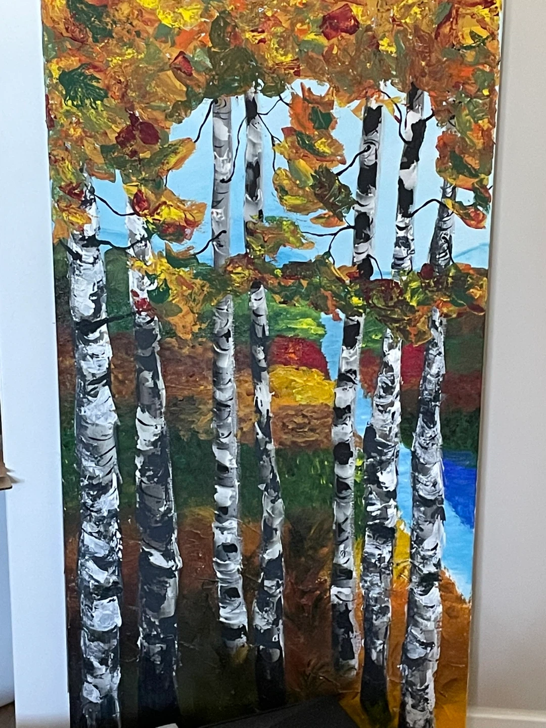 Acrylic tree painting. Dimensions are 17 1/2 width inches by 35 inches length