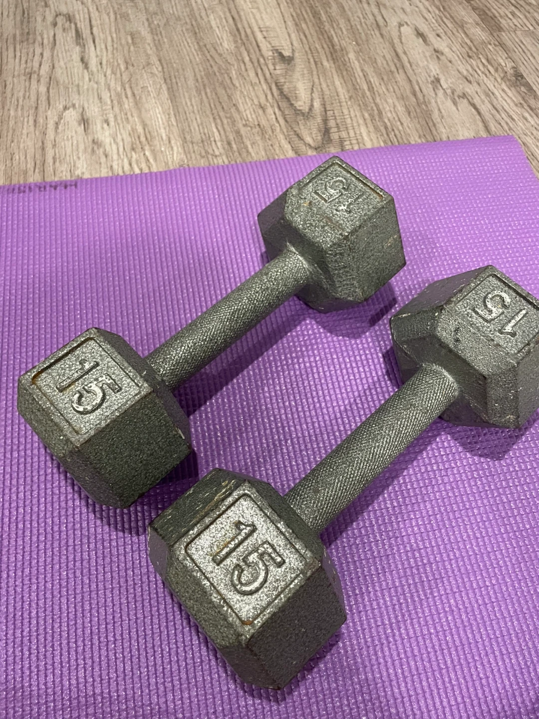 Selling a pair of 15 lb dumbbells. They're in good condition and ready for your home workouts! Perfect for building strength and toning muscles 📍Dundas & Winston Churchill