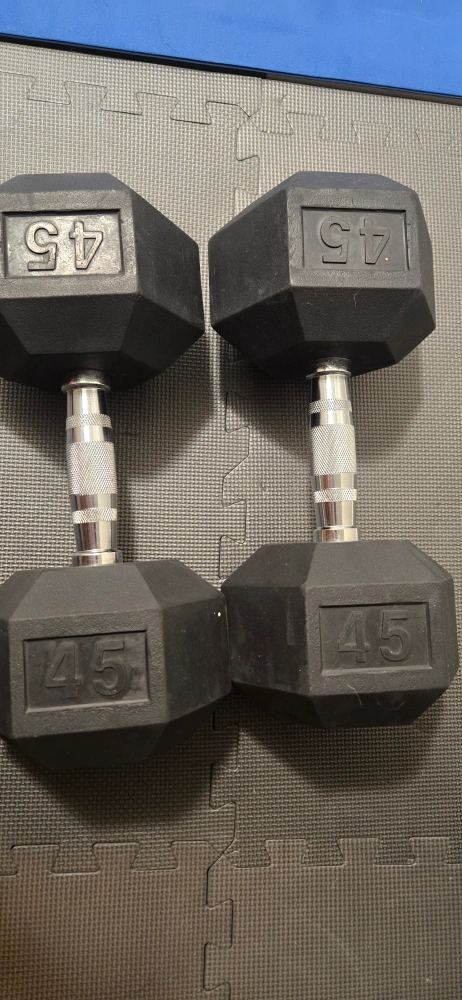 Selling a pair of 45 lb hex dumbbells! They're in great shape and ready for your home gym setup