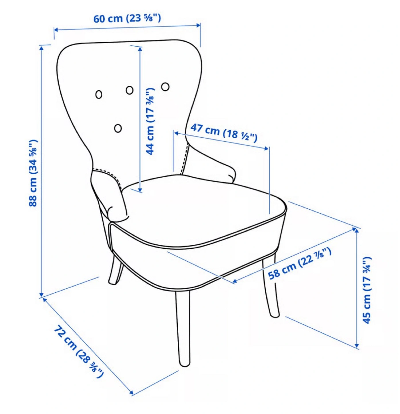 Looking to add a touch of elegance to your space? This pair of accent chair is perfect! It comes in a lovely beige colour that will complement any decor. The chair is in great shape and super comfy for lounging. It also comes with complimentary floral protective cover! Dimensions: - 60 cm (23 5/8") wide - 88 cm (34 5/8") high - 72 cm (28 3/8") deep - Seat height: 45 cm (17 3/4") - Seat depth: 47 cm (18 1/2")