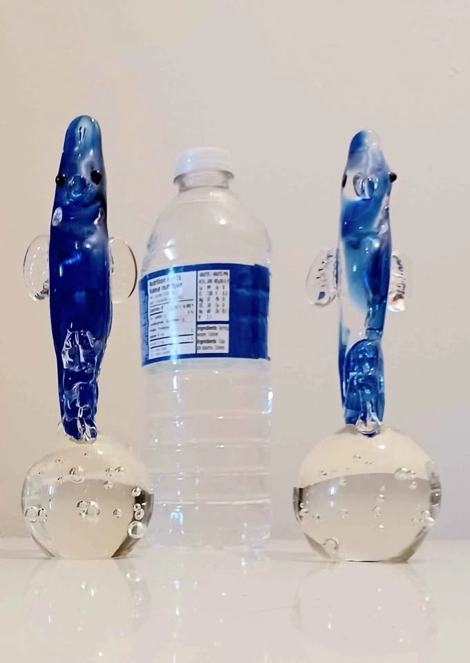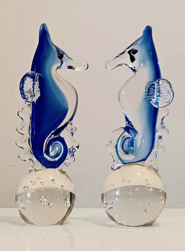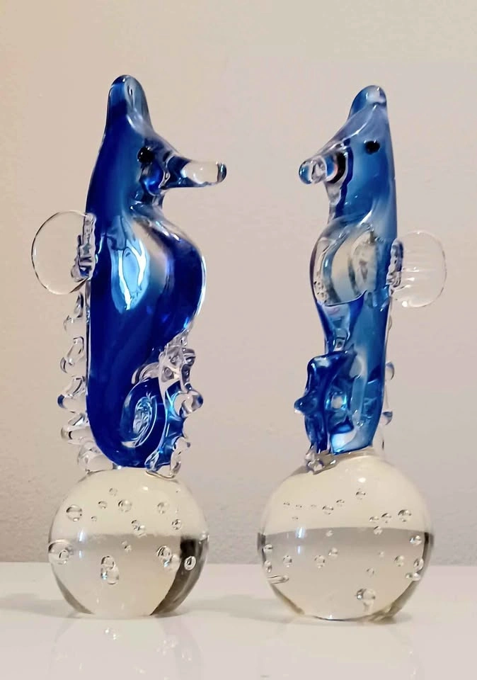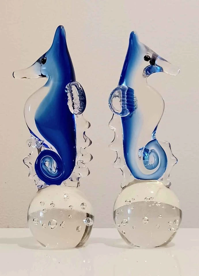 Pair of Controlled Bubbles Hand Blown Crystal Seahorses