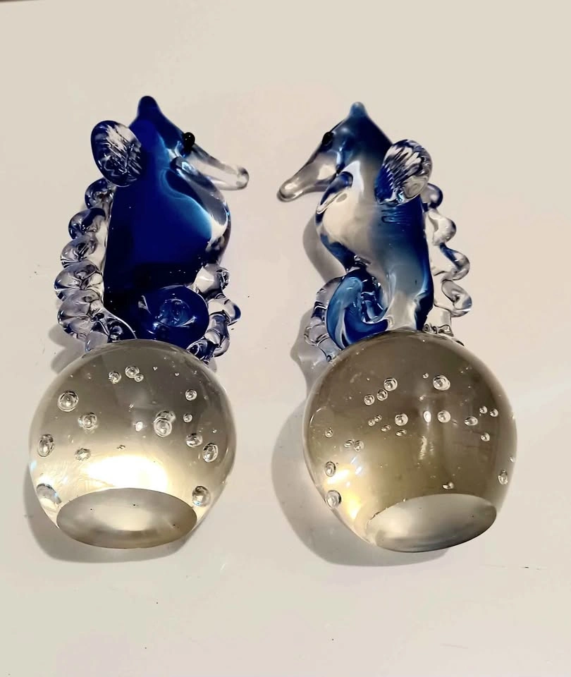 Vintage, very rare pair of Controlled Bubbles crystal seahorses. Mouth-blown glass art, paperweights, desk decor, mantel decor sculptures for the household. Height: 18 cm. Mint condition, no chips or cracks. Please check out my other rare items!