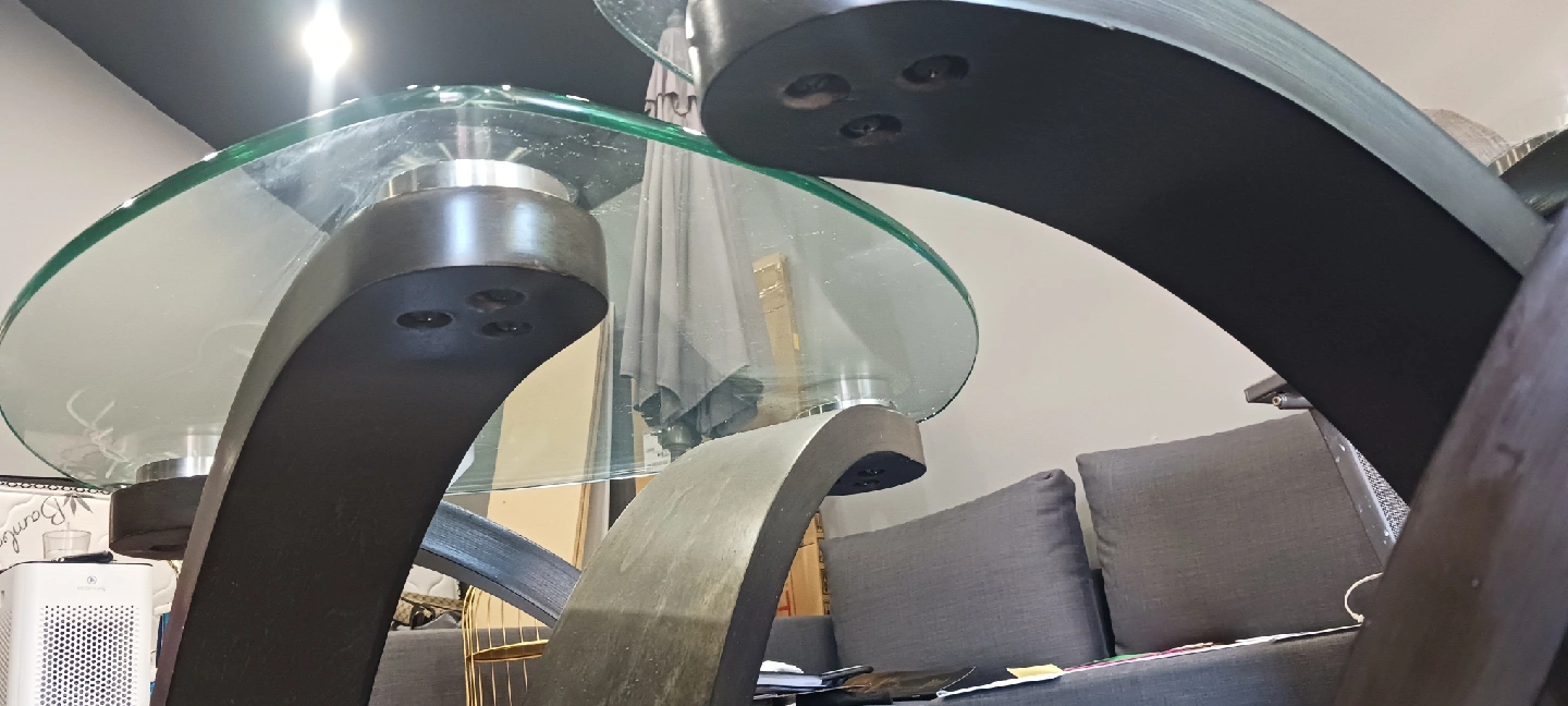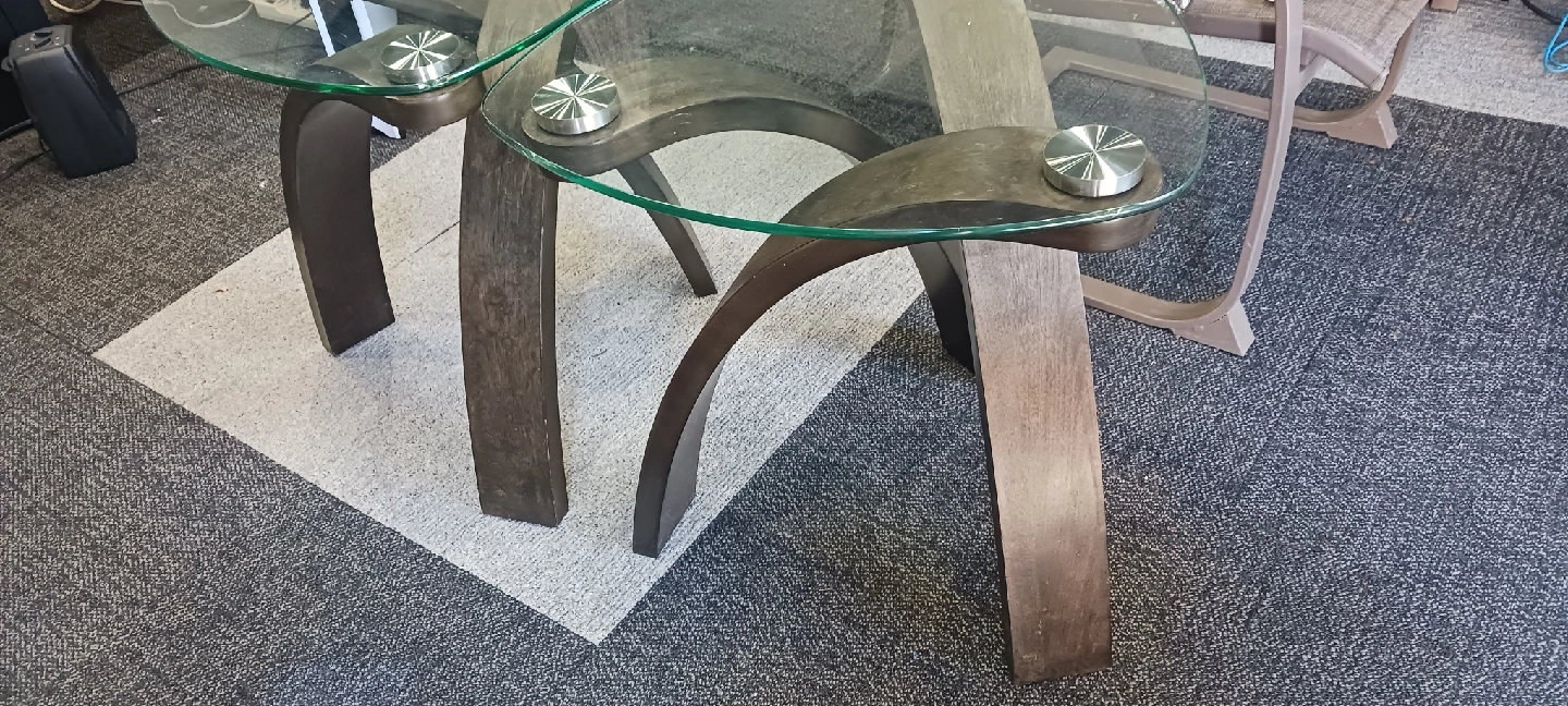 Unique glass top accent tables with a stylish, modern design. The dark wood base and clear glass top create a sophisticated look. Perfect for adding a touch of elegance to any room in your home!
