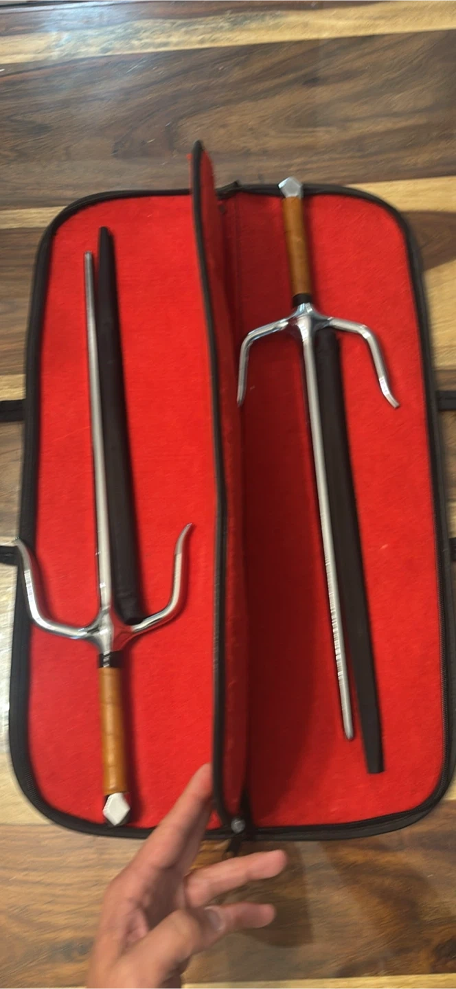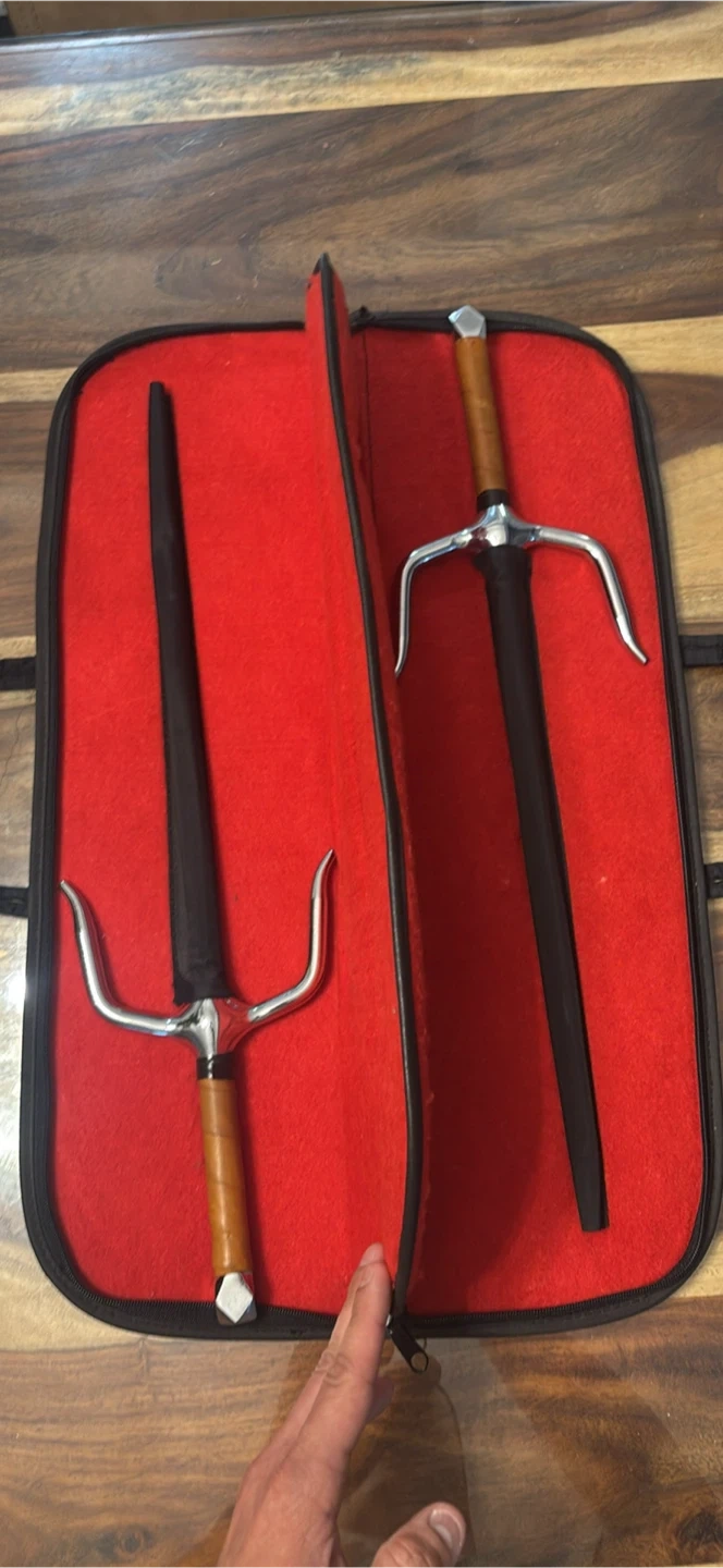Selling a pair of sais, complete with a carrying case. They are in great condition and ready for use. Price: $70 CASH ONLY NO HOLDS FIRST COME FIRST SERVE SERIOUS INQUIRIES ONLY ✅Please follow if you like and feel free to check out my other listings for more amazing finds and hot deals!✅