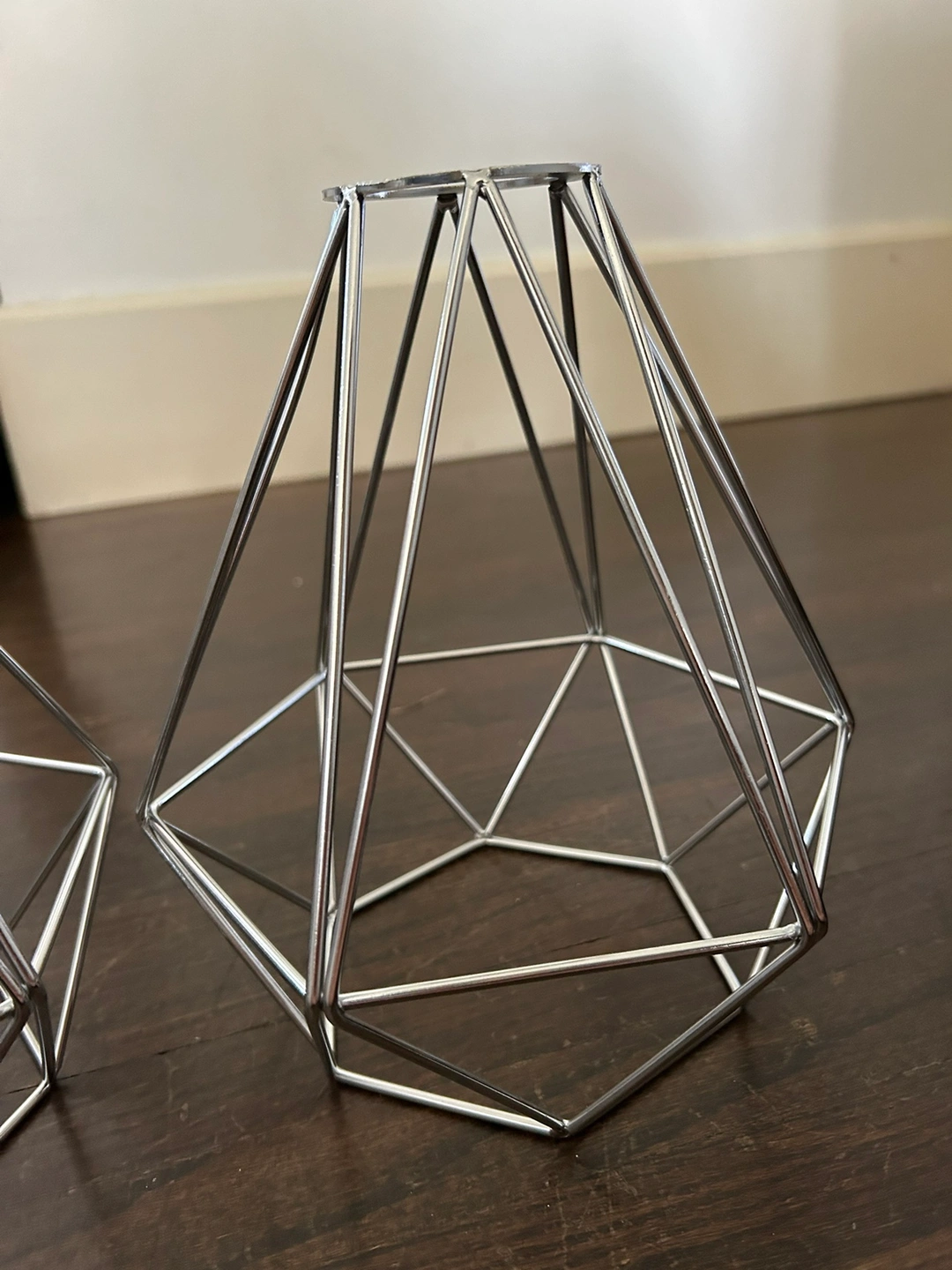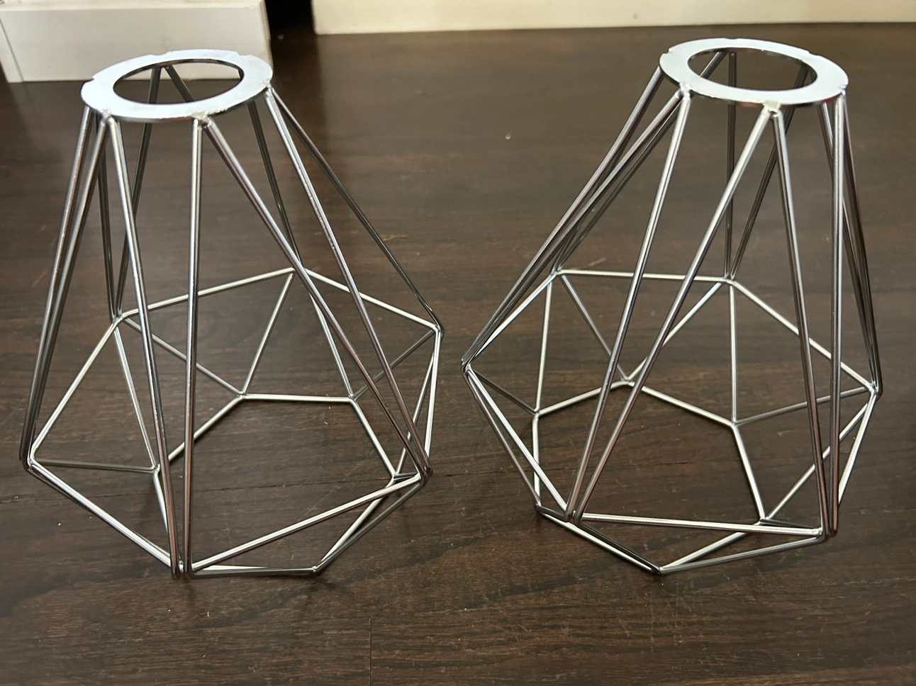 Pair of Silver Metal Cage Lamp Shades