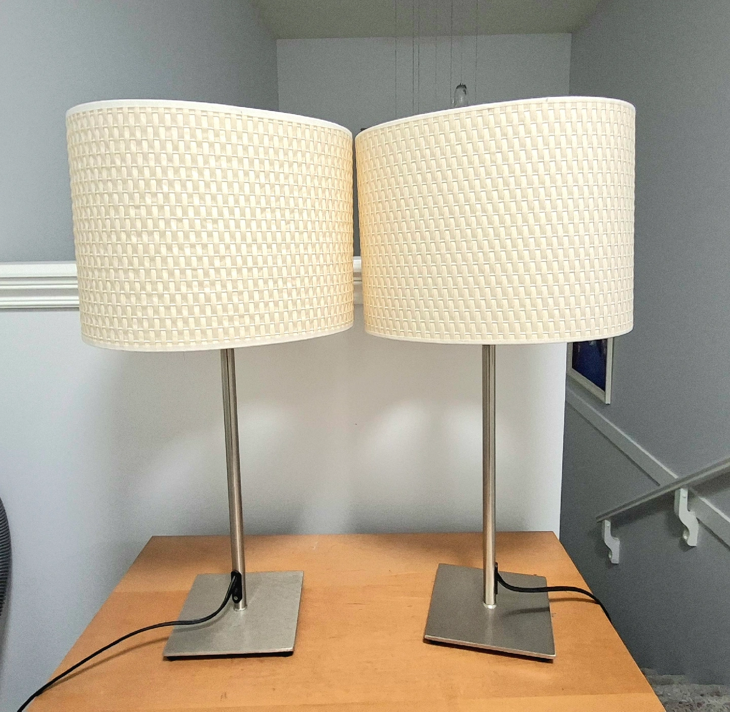 Selling a pair of table lamps. They feature a shade and a sleek, modern design. Great for adding a warm and stylish touch to any room!