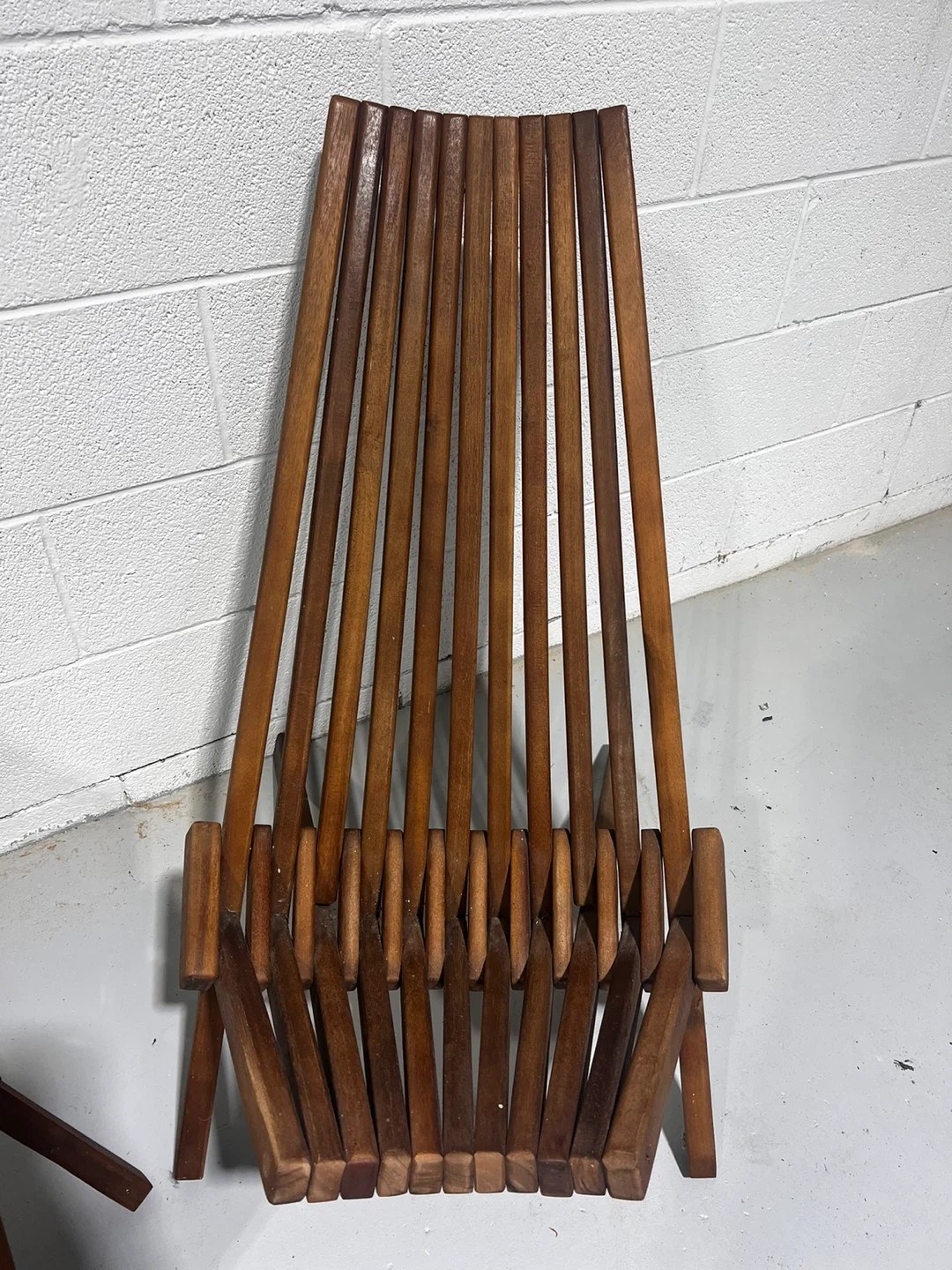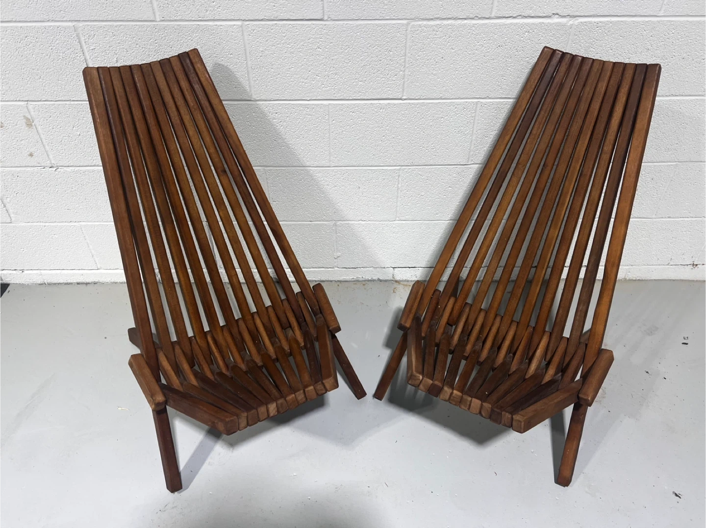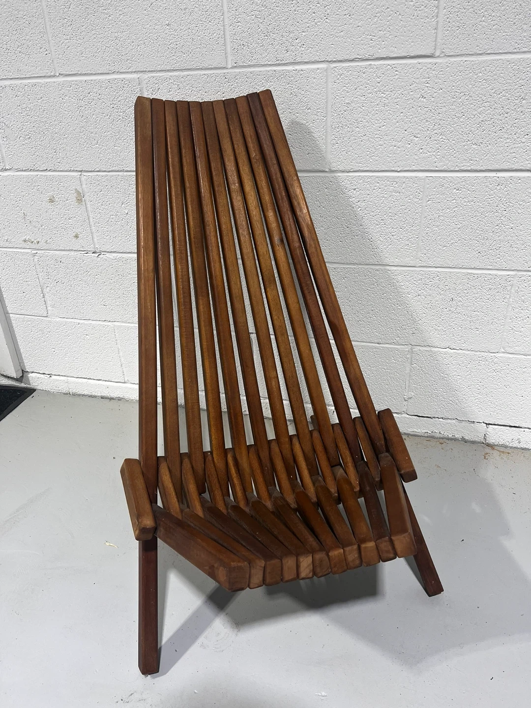Selling a pair of vintage folding wood chairs. These chairs are in good condition and have a unique design. They would be a great addition to any home! Would look amazing on a patio or balcony. $100 each!