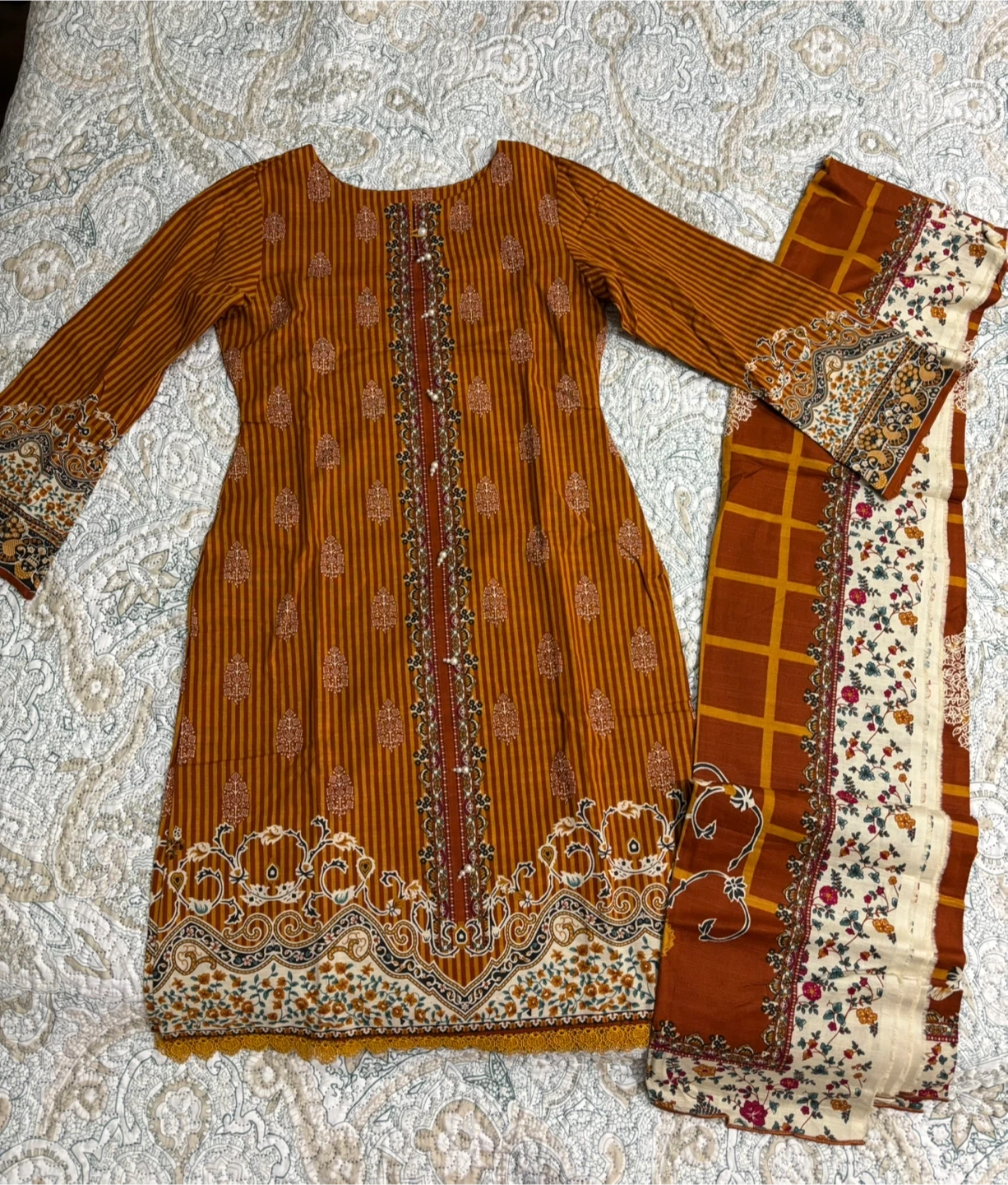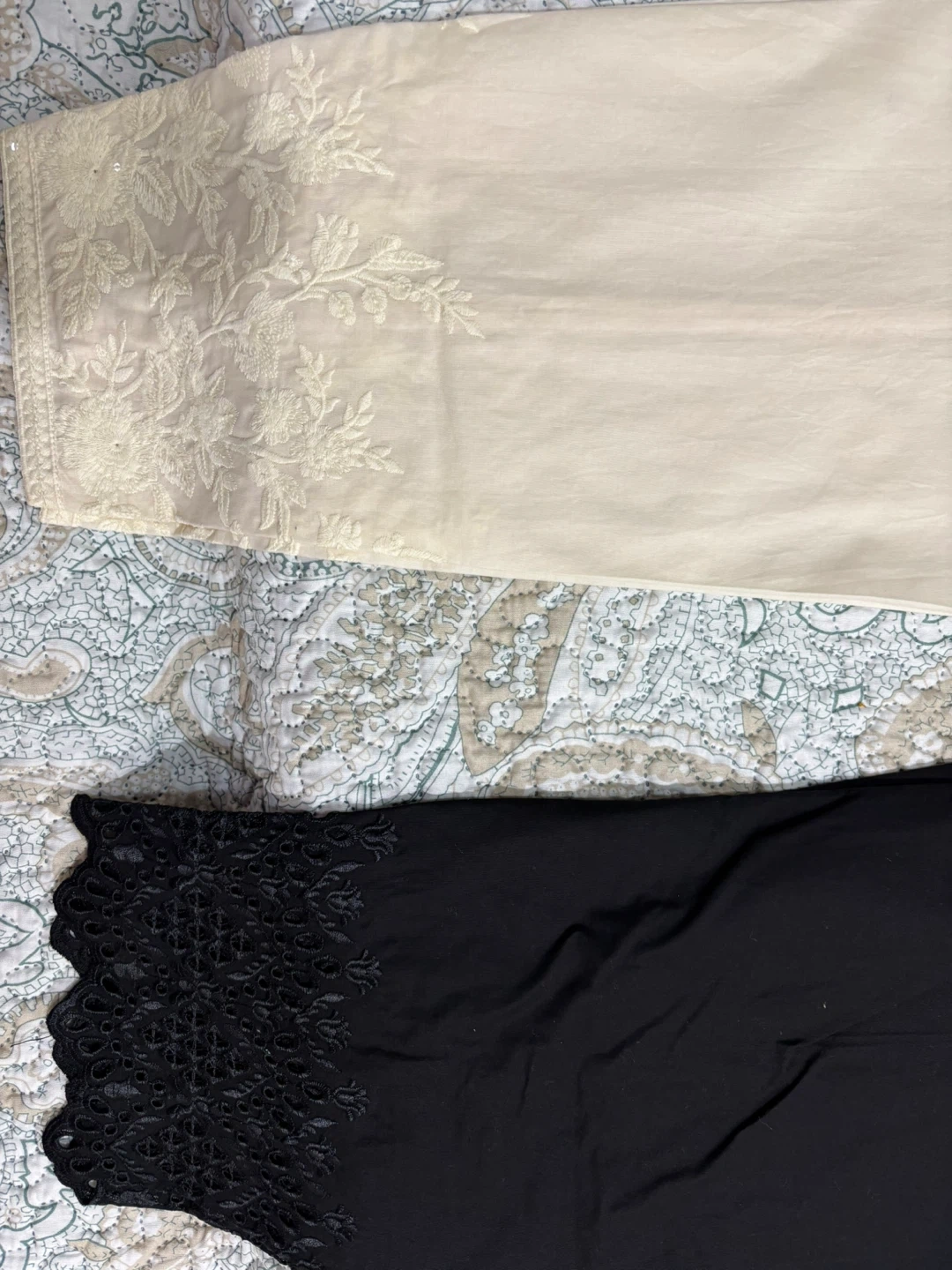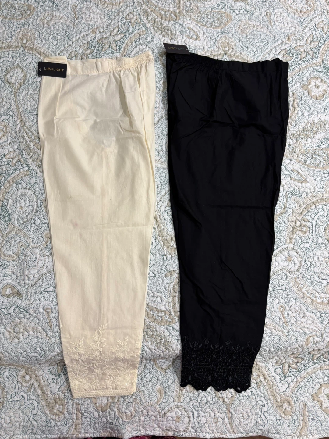 Selling a new unworn 2-piece set (shirt and scarf) for $30 bought from Sapphire. Also, 2 trousers (new and unworn) in off white and black colour selling for $10 each bought from Limelight. Trousers are in small size, and the shirt is a xs to small size.