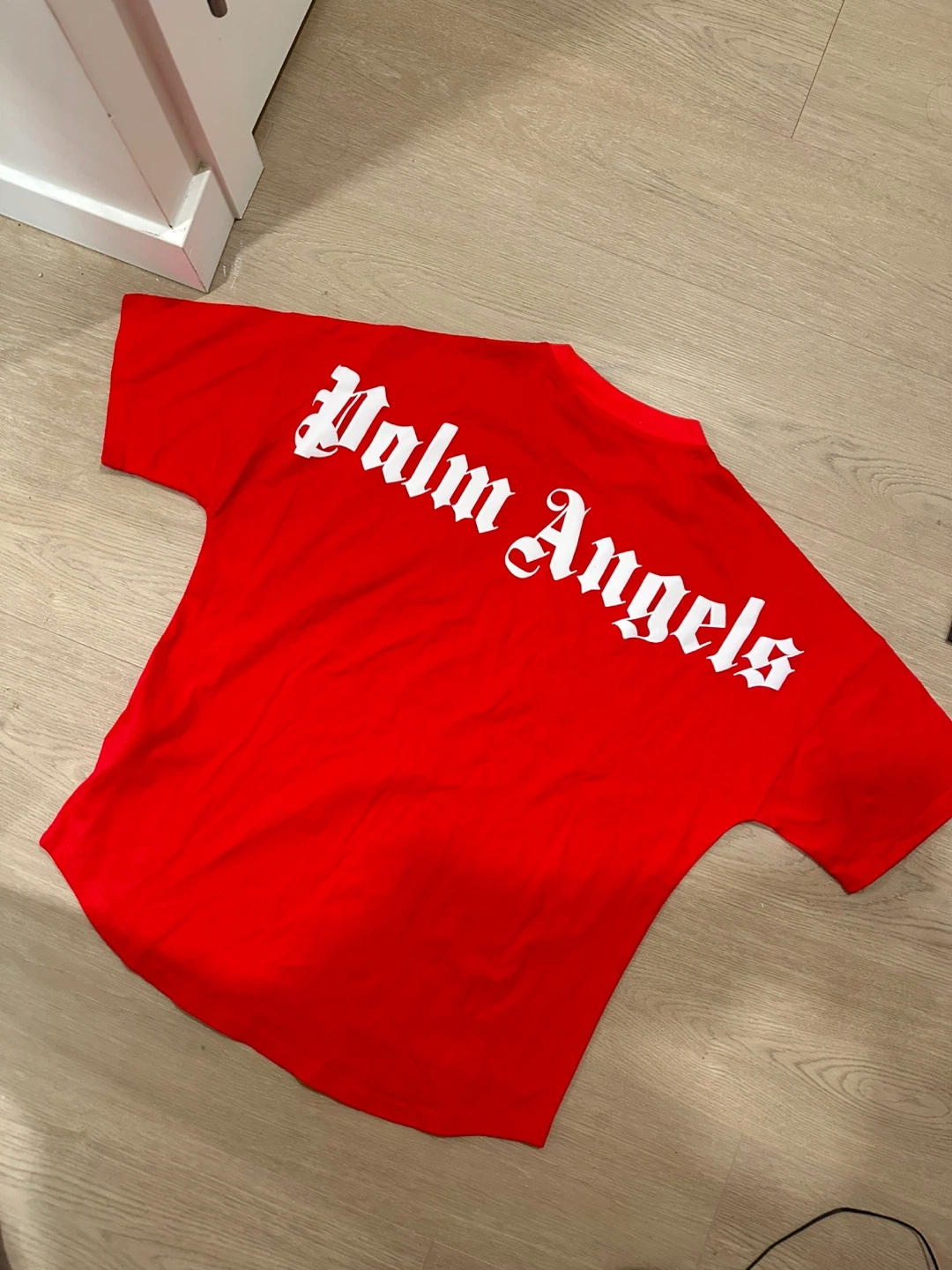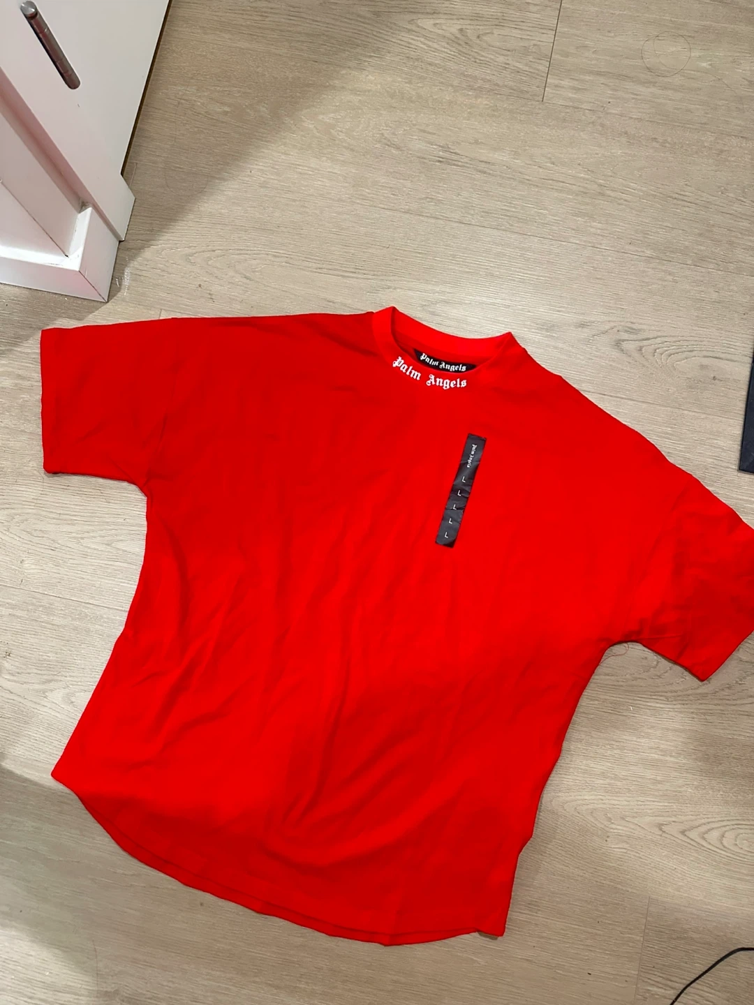 Selling a bright red Palm Angels t-shirt in size large. It's in great condition and features the Palm Angels logo on the back. Perfect for adding a pop of colour to your wardrobe!