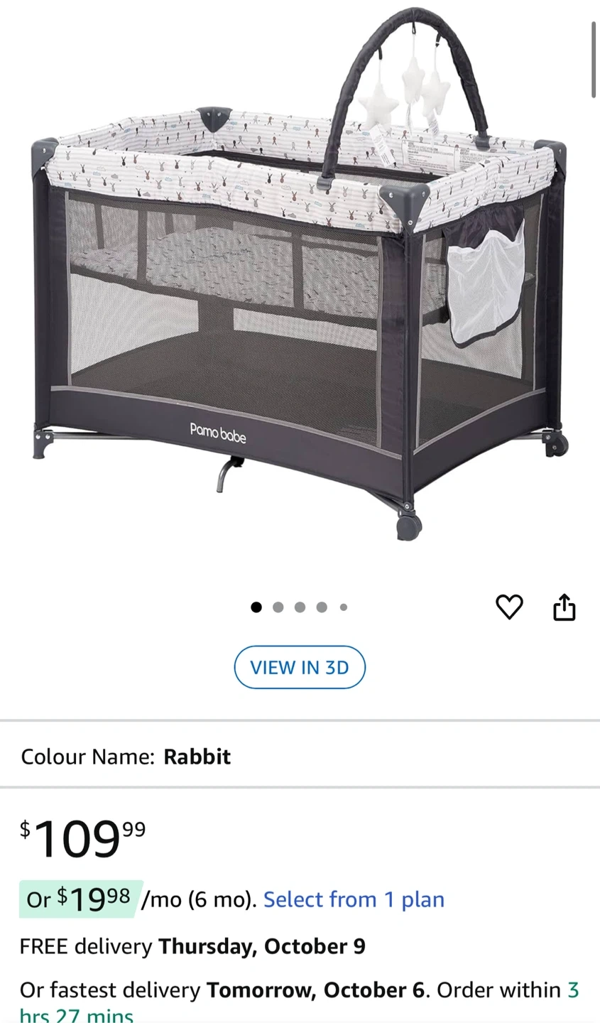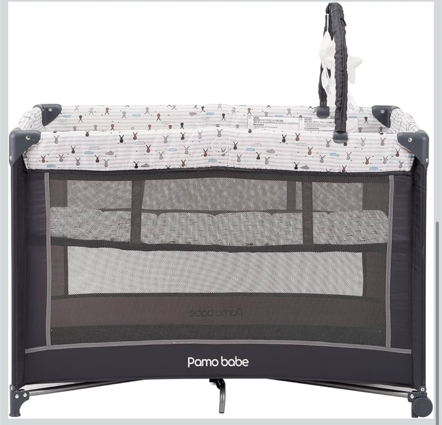 Selling a Pamo Babe portable playard in excellent condition! It features a cute rabbit pattern and comes with a mobile to keep your little one entertained. Perfect for travel or home use!