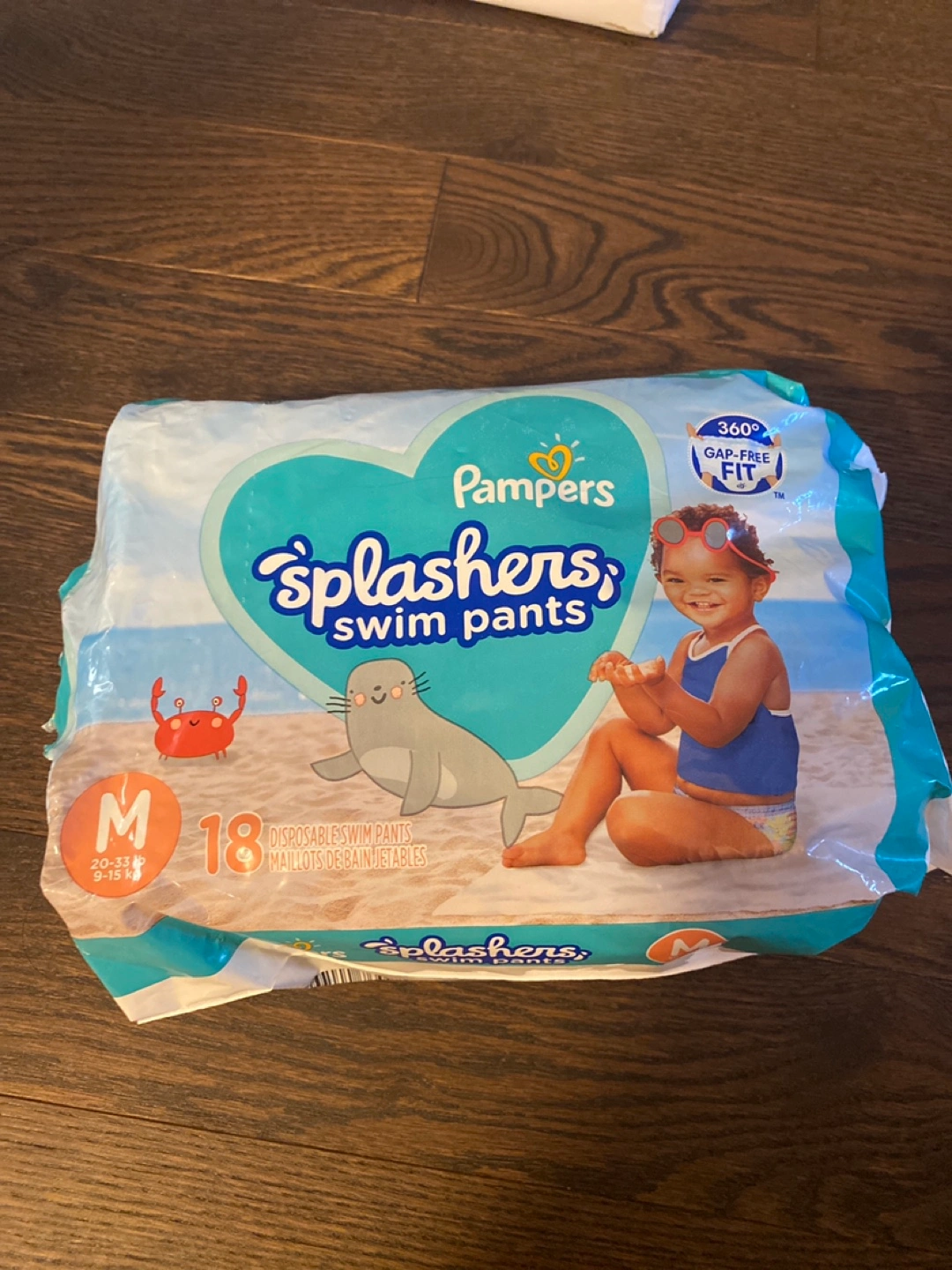 These Pampers Splashers swim pants are perfect for your little one's water adventures! They are size M, fitting babies from 20-33 lbs (9-15 kg). There are 13 disposable swim pants in the package. Cash only Pick up only