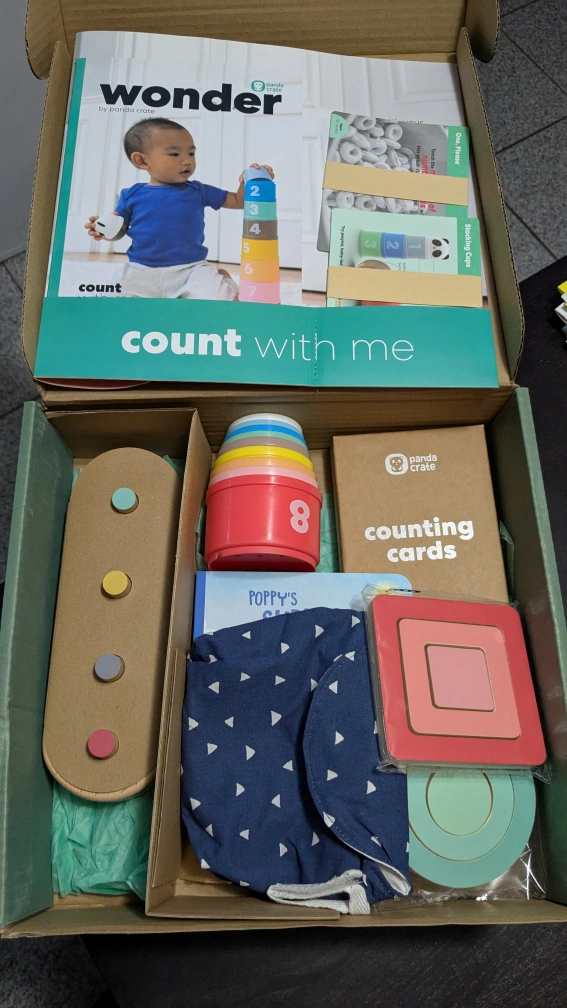 Selling a Panda Crate Wonder "Count With Me" kit! This set includes stacking cups, counting cards, and other fun learning materials for your little one. Perfect for introducing early math concepts in a playful way