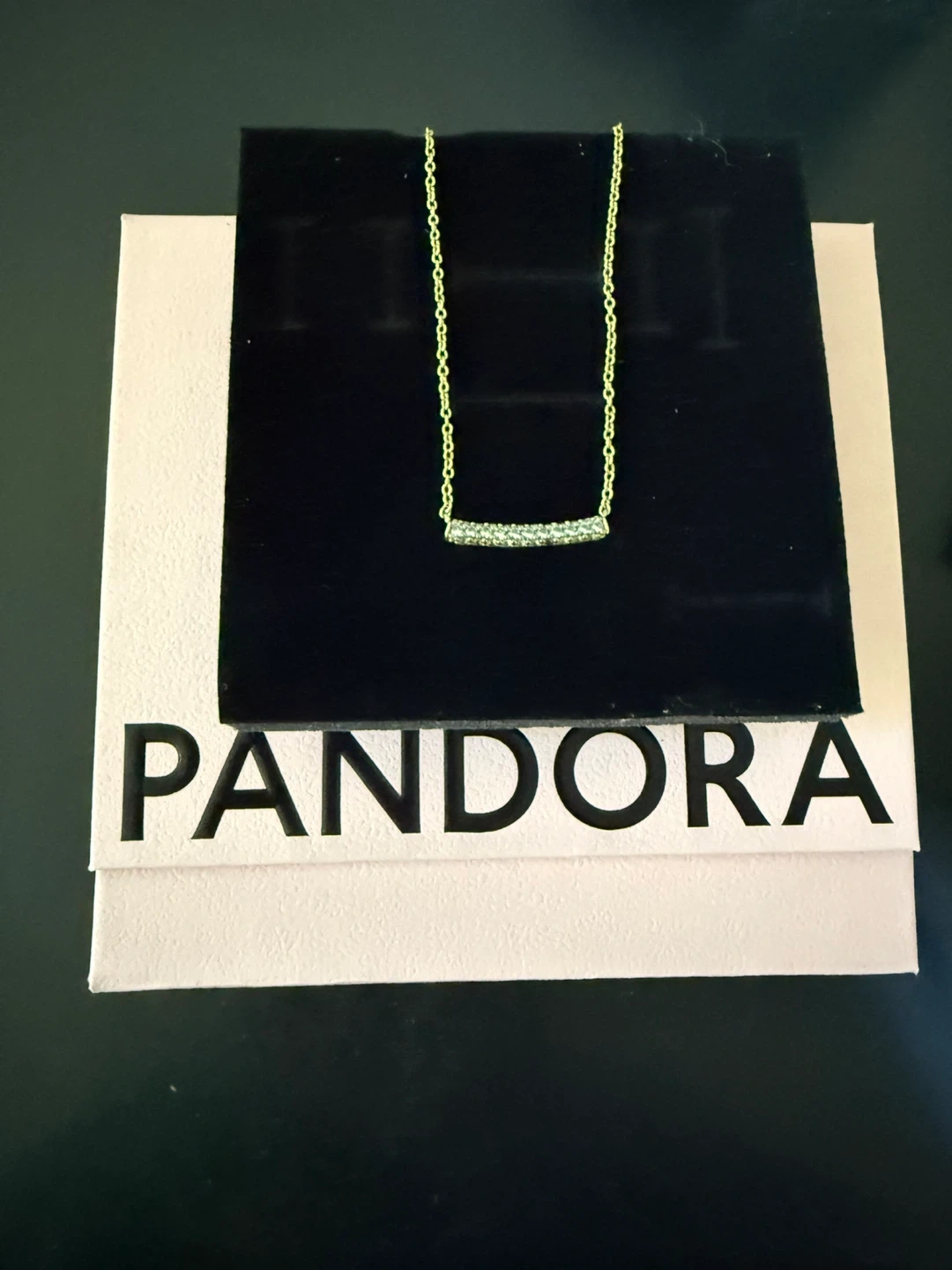 Selling a beautiful Pandora pavé bar necklace. It comes with the original box.