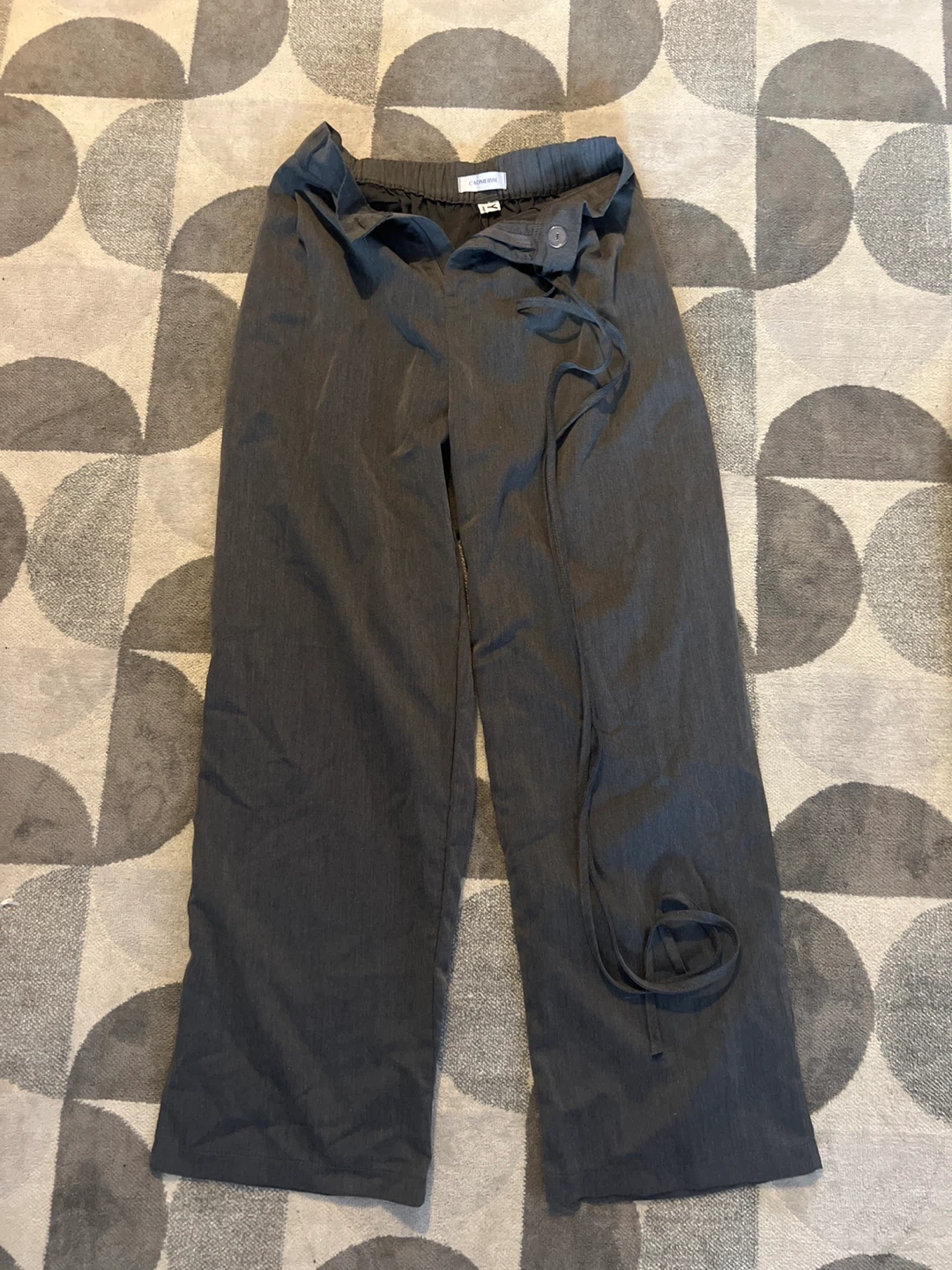 Selling a pair of pants in size M. They are a stylish grey colour and in great condition! Perfect for a casual or dressed-up look. The material is lightweight, stretchy and comfortable, making them ideal for everyday wear