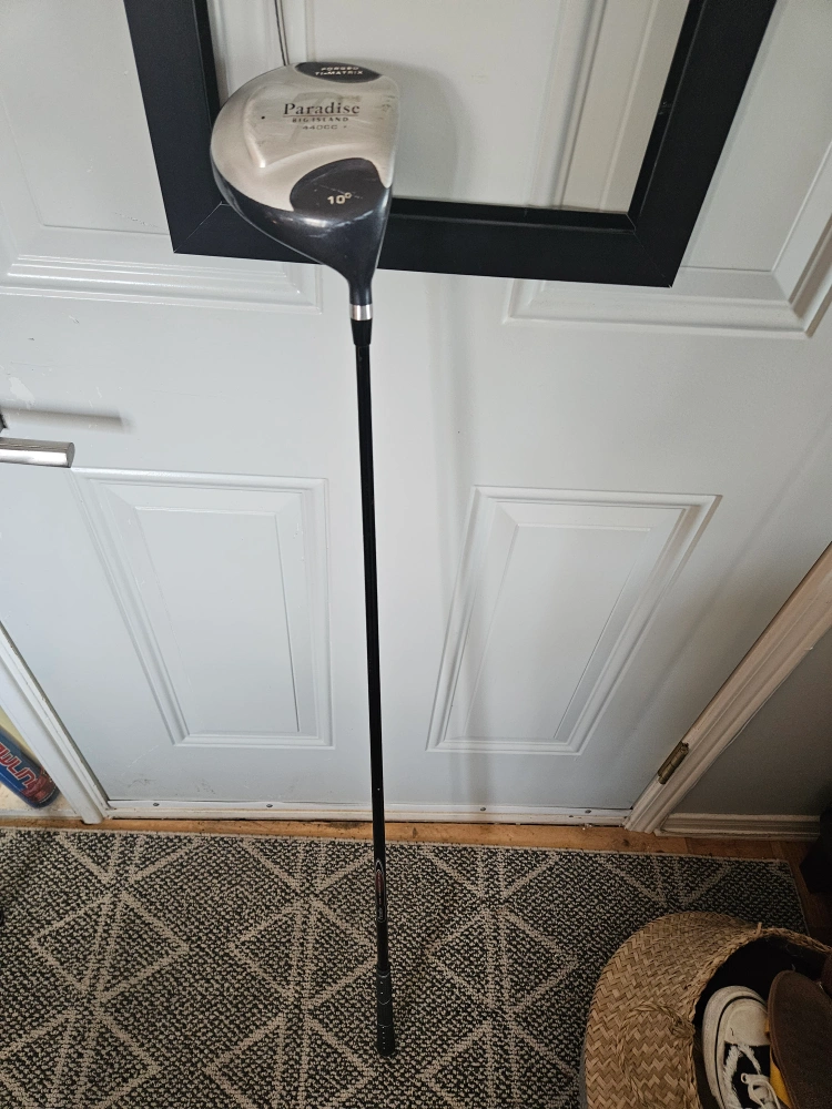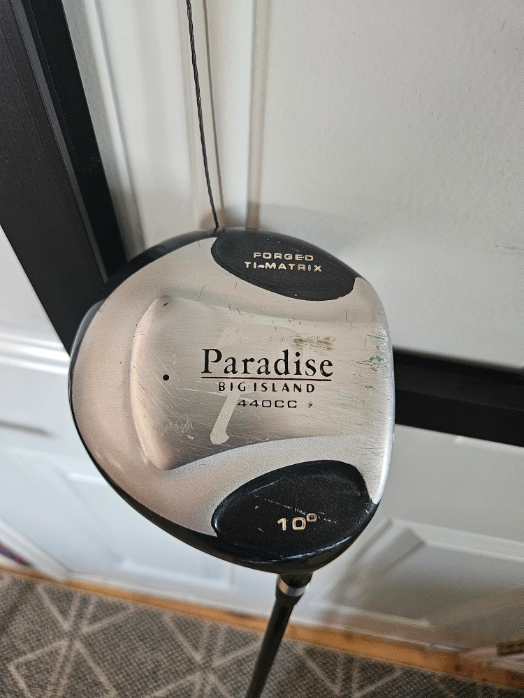 Selling a Paradise Big Island 440CC golf driver. It has a 10° loft and a high modulus graphite, low torque shaft. It's a forged Ti-Matrix driver. Original grip - used but in good condition.