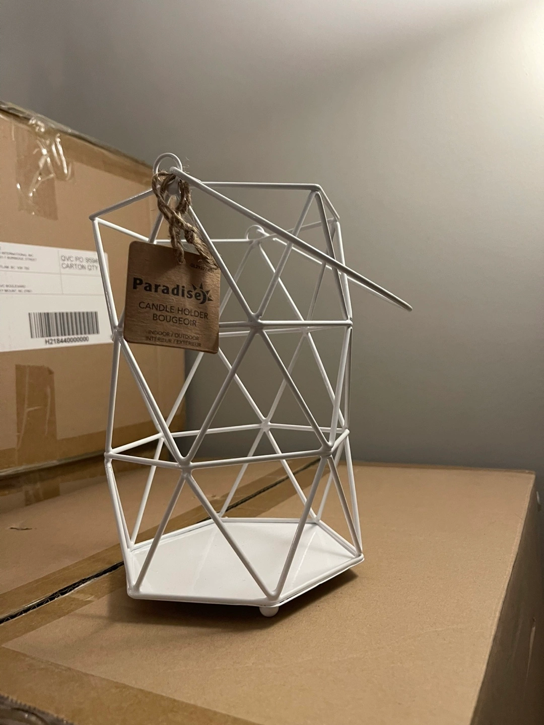 Here's a cute Paradisex candle holder, perfect for indoor or outdoor use! It's white and in great shape. It's a nice little bougeoir that'll add some charm to your space