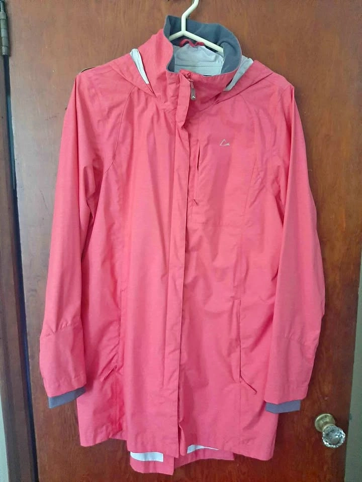 Women's rain jacket. Thigh length. Great condition with no stains or rips. Rarely worn. Pick up near Cornwall and Trafalgar in Oakville Cash only. Price firm