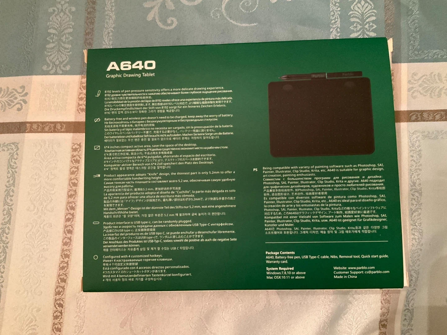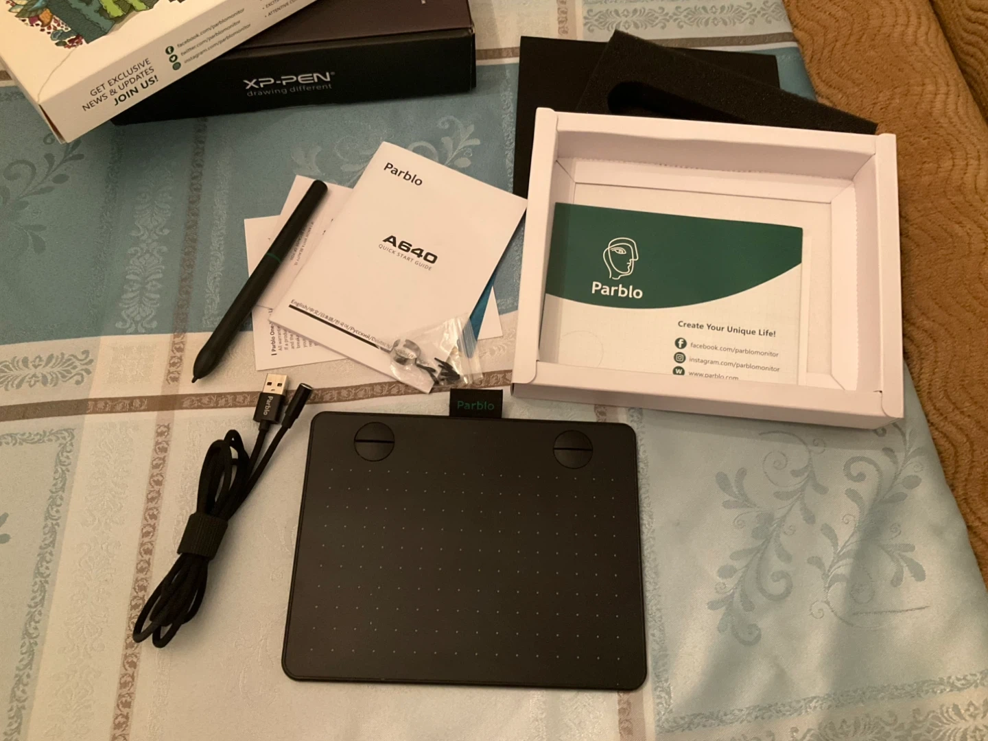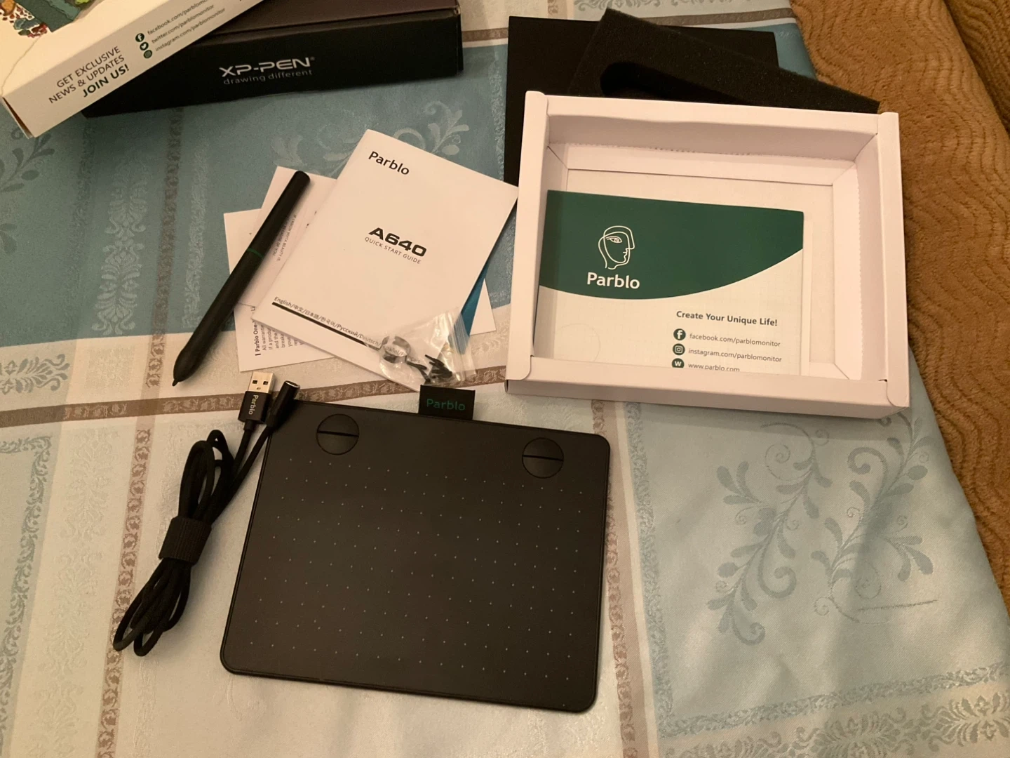 Selling a Parblo A640 graphic drawing tablet in like-new condition! It comes with everything you see in the photos: the tablet, pen, USB cable, and quick start guide. Great for anyone looking to get into digital art or graphic design!