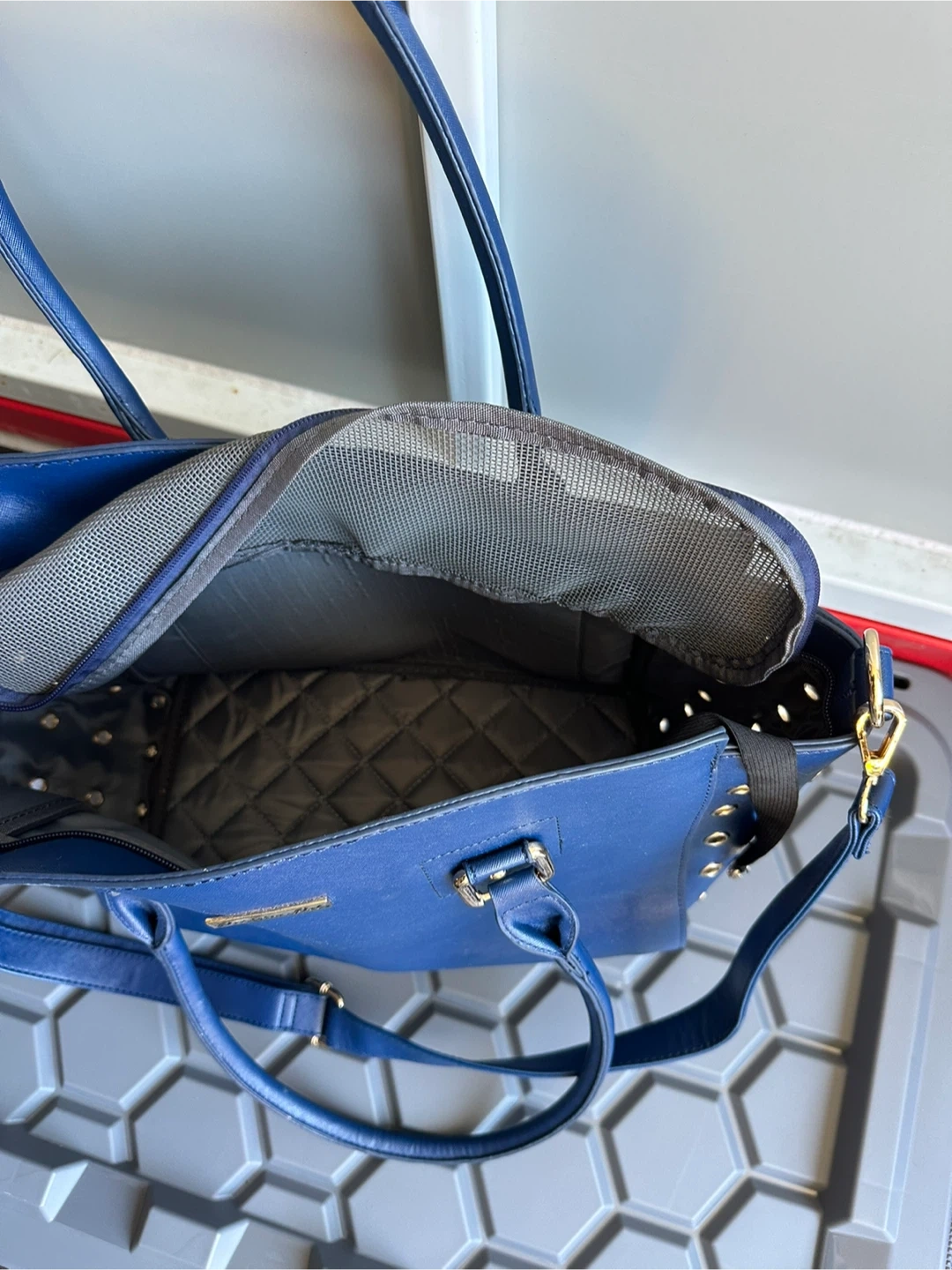 Looking to sell this Parisian Pet carrier tote bag in blue! It's in great condition and perfect for carrying your furry friend around town. Has a shoulder strap and a top handle for easy carrying. The inside is quilted for extra comfort for your pet