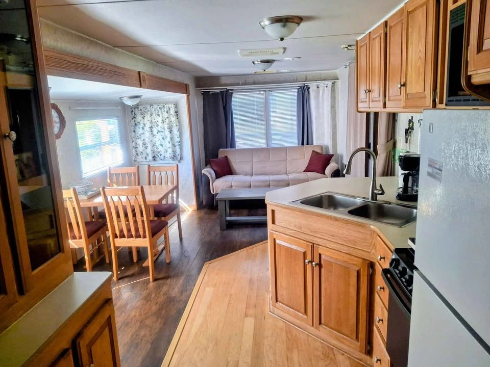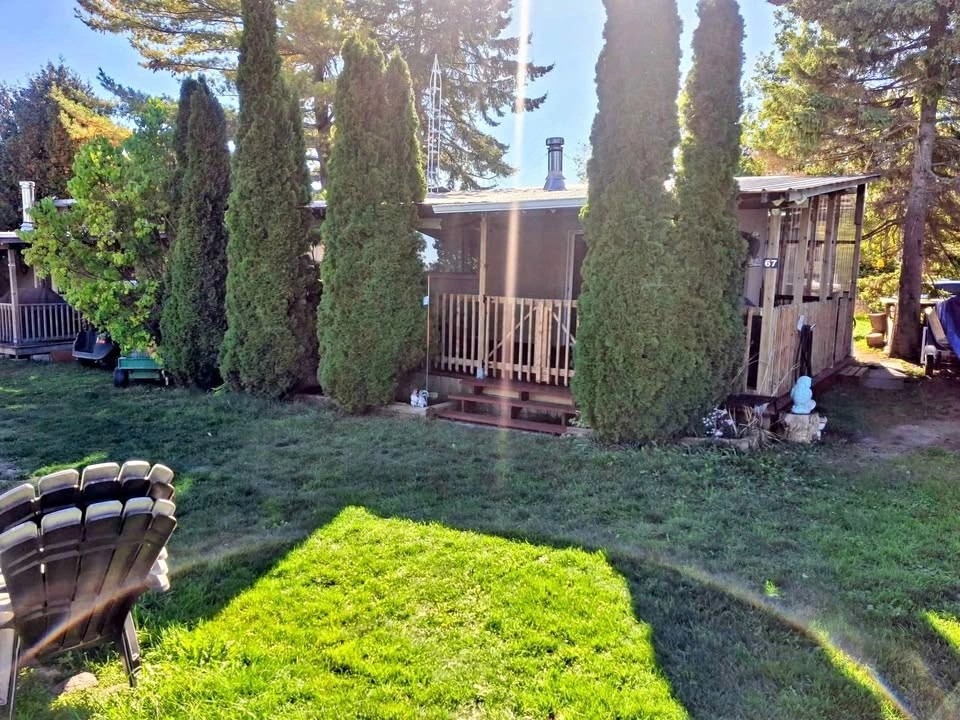 Enjoy lakeside living in this Presigo Park Model Trailer with a beautifully built 24' x 11' add-on room, located in the sought-after Arrowhead Camp and Resort on scenic Rice Lake. Key Features: • Presigo park model trailer • Spacious 24' x 11' add-on room professionally finished with stucco • 1 bedroom in the trailer with a queen-size bed • 1 bedroom in the add-on room featuring a queen-size bed plus bunk beds • High ceilings in the add-on room • Wood-burning fireplace for cozy evenings • Metal roof covering both trailer, add-on room and the deck. Outdoor Features: • Large 31' x 12' deck with an additional 13' x 6' wrap-around section • Fully fenced-in deck with two gates – perfect for kids or pets • Beautiful mature cedar trees line the front for added privacy Included Items: • BBQ • Lawn mower • Couch • Patio table • Full kitchenware • Golf cart (extra) This turn-key trailer is move-in ready and perfect for relaxing weekends, family vacations, or seasonal stays. Located in Arrowhead Camp & Resort, Rice Lake