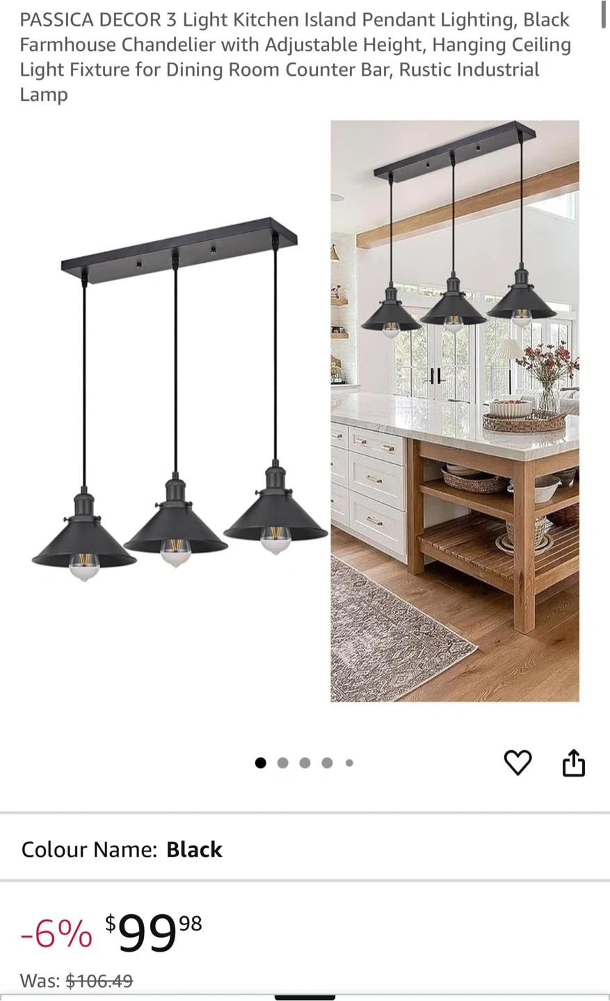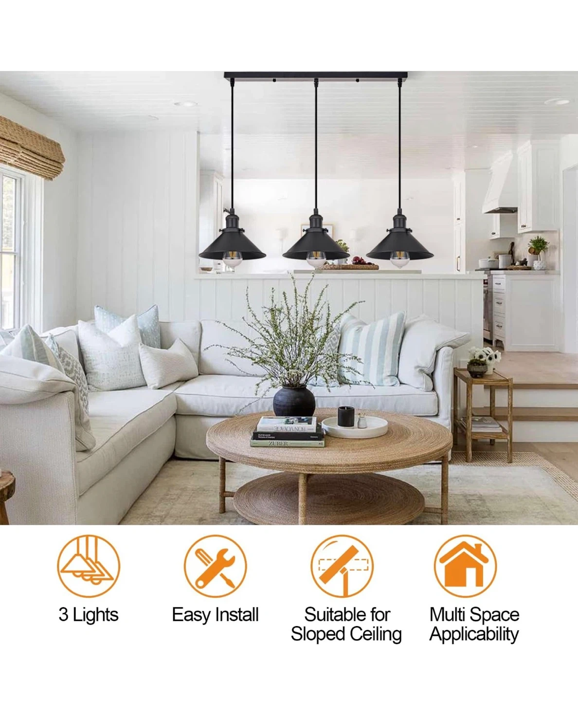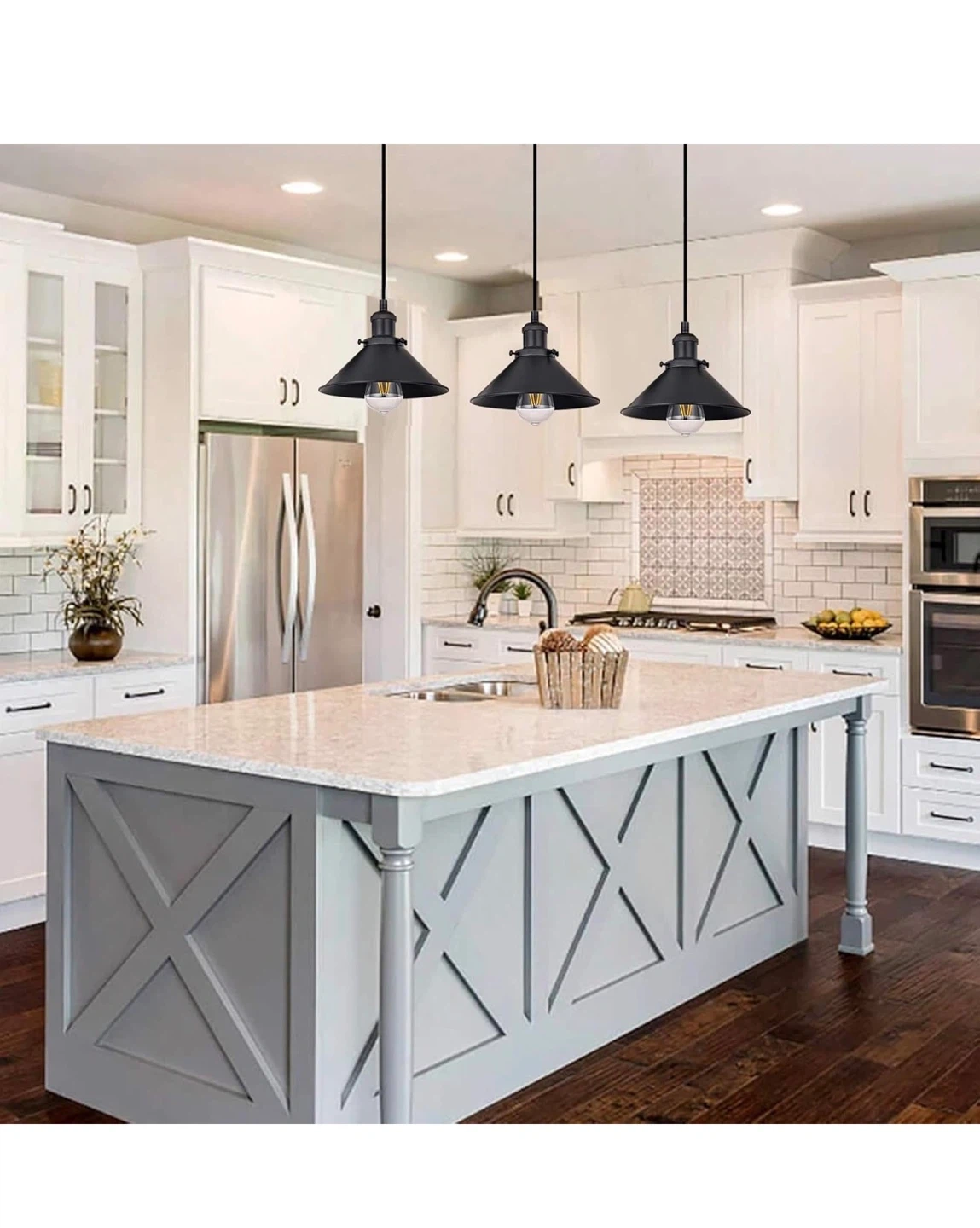 This is a PASICA DECOR 3 Light Kitchen Island Pendant Lighting in Black. It's a farmhouse chandelier with adjustable height, perfect as a hanging ceiling light fixture for a dining room counter bar. It has a rustic industrial lamp style. Bulbs are not included. The adjustable wire length goes up to 55 inches.