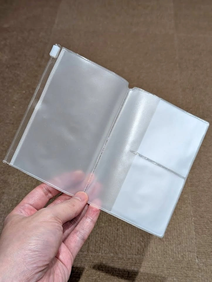 Pickup near Dunblane and Imperial (Metrotown). Like new condition. Plastic zipper case that you can insert into your passport size notebooks. One end is a zipper case and another end has pockets for cards. Made of PVC Dimensions 5.1" x 7.4" when open