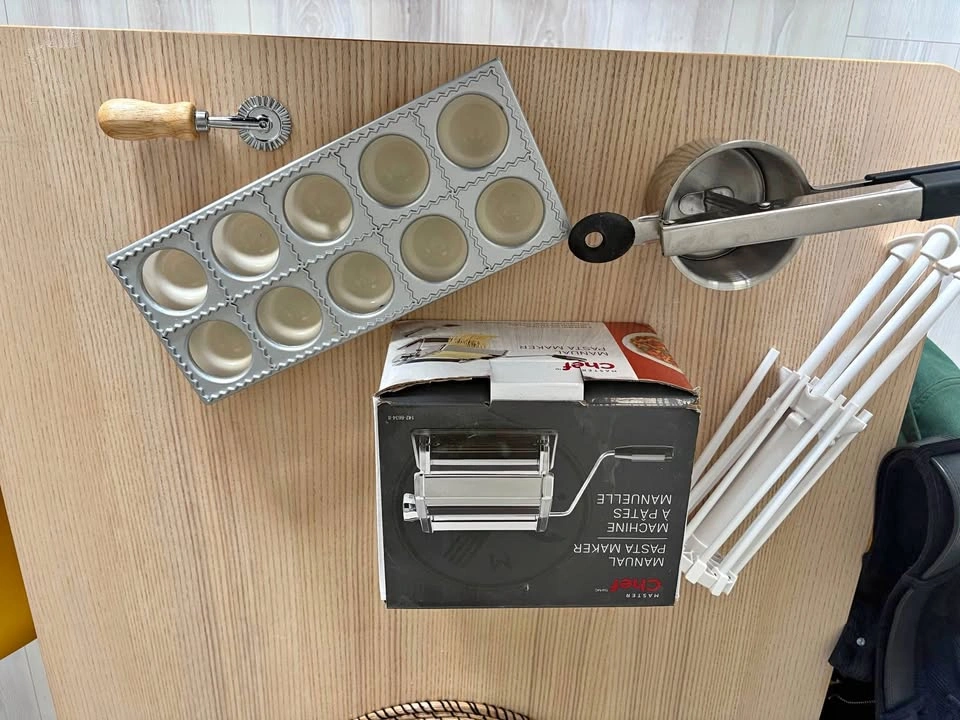 Manual pasta maker, pasta stand for drying, pasta cutter, ravioli maker, potato ricer