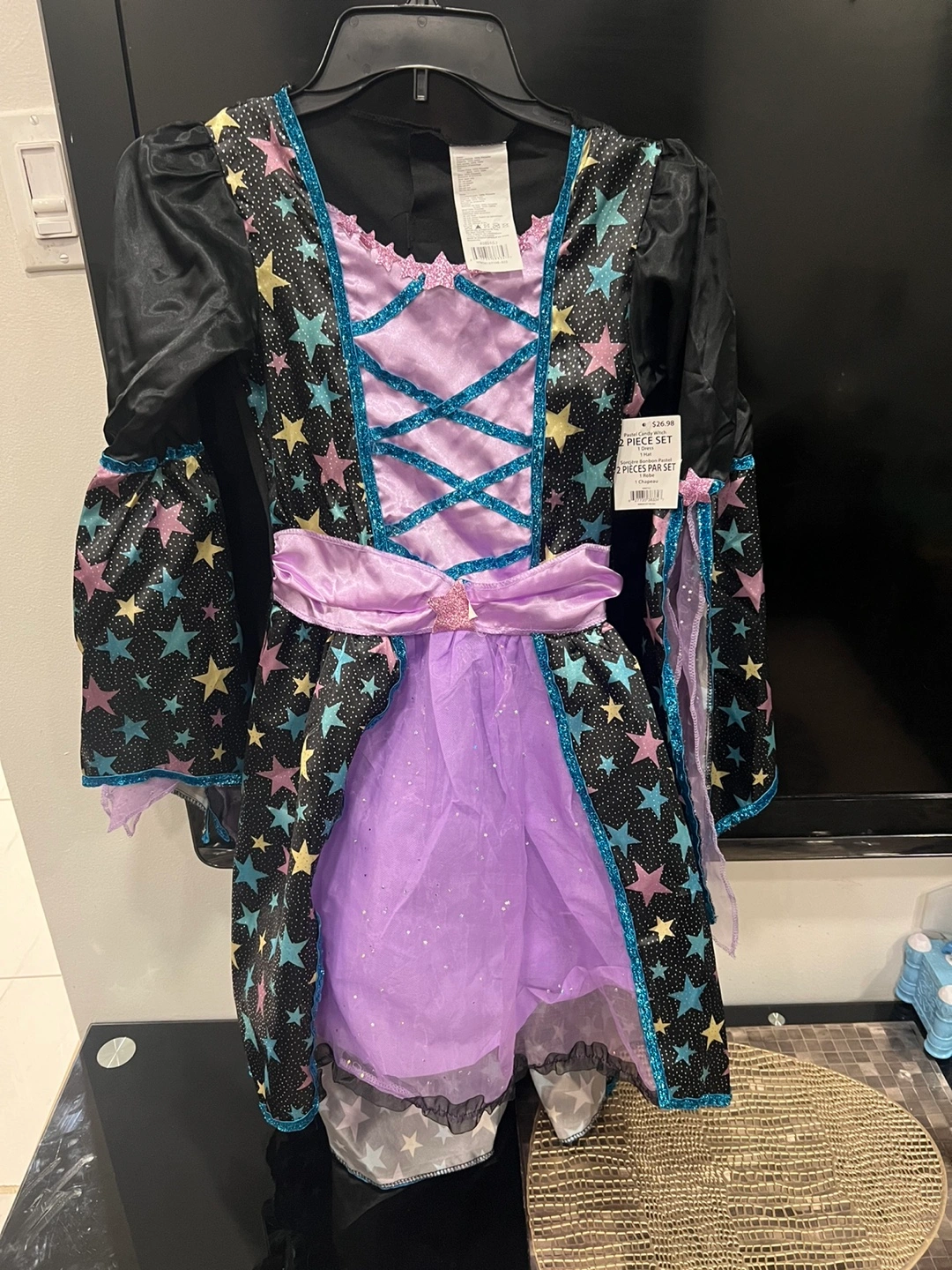 Get ready for Halloween with this adorable Pastel Candy Witch costume! It's a 2-piece set that includes a dress and a hat. The dress has a cute star pattern and pastel colours, perfect for a sweet and spooky look.
