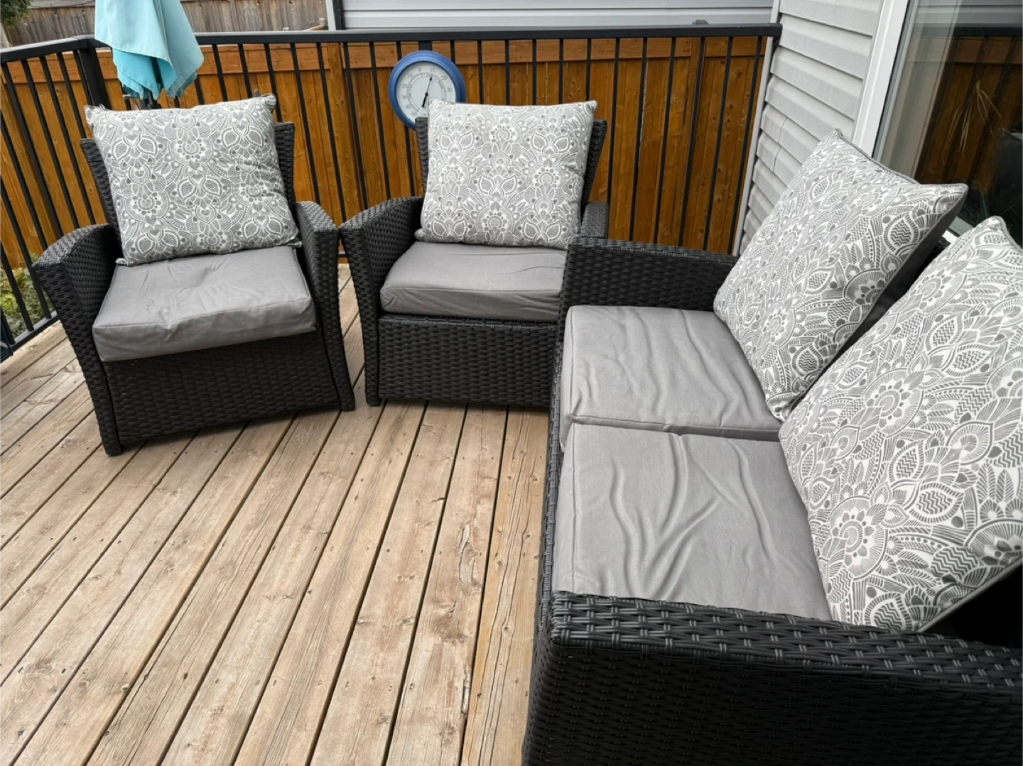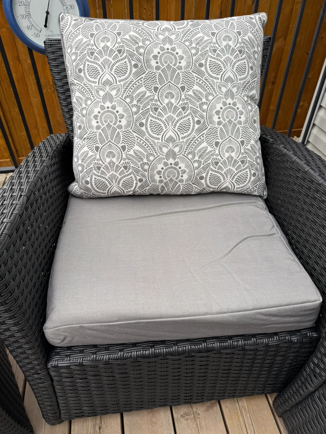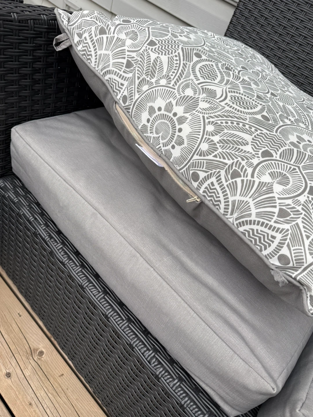Pending pickup… New patio cushions (only - furniture not included) Set of 4 Been in storage One upper cushion has a broken seam, easily repaired Pick up in New Brighton SE Calgary
