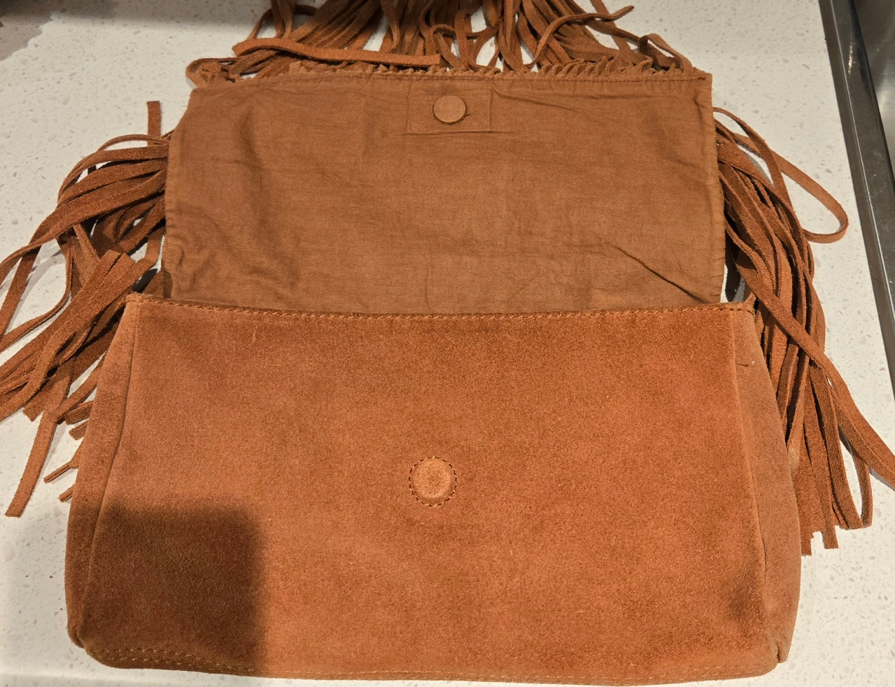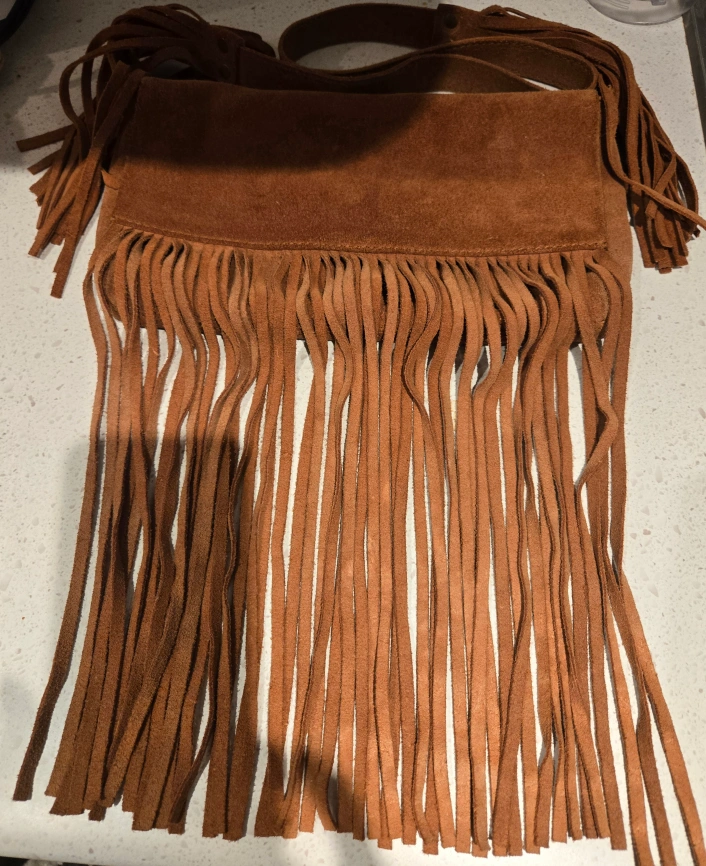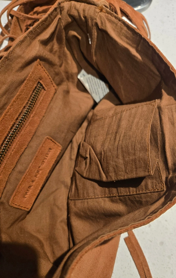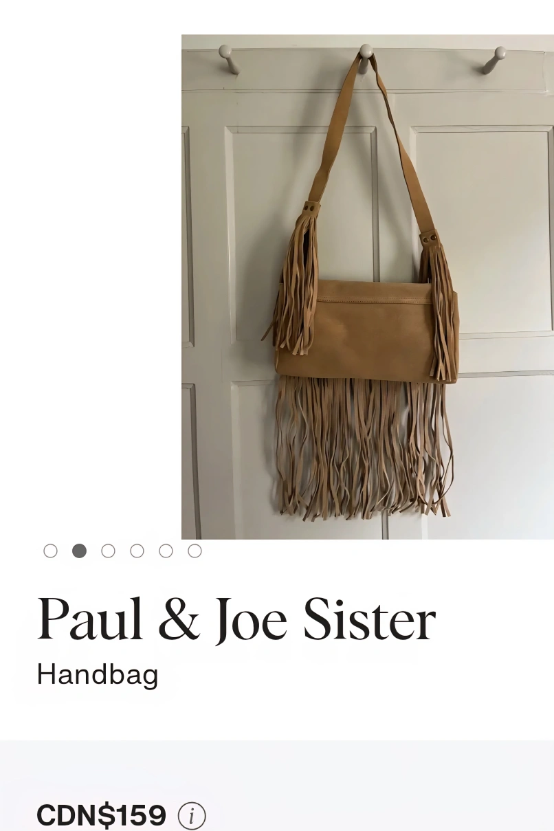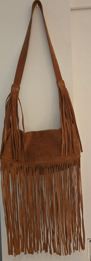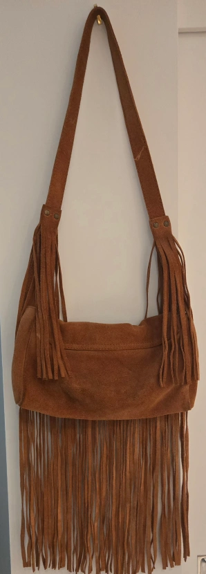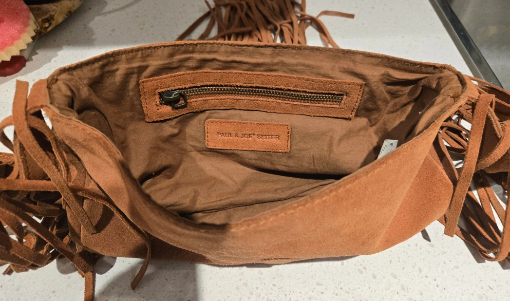 This is a Paul& Joe Sister bag made of brown suede. It has a fringe design and a shoulder strap. It's in very good condition and ready for a new home! just a little wear signs