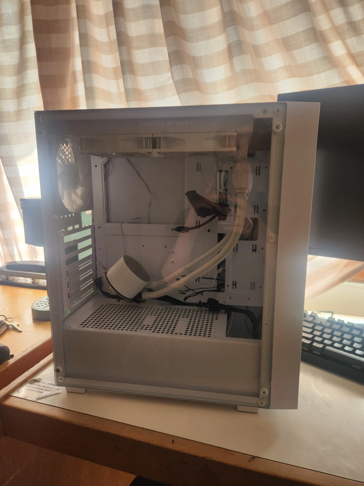 Selling a pc case in white. It's in great shape and ready for a new build! With a AIO and power supply and cables set
