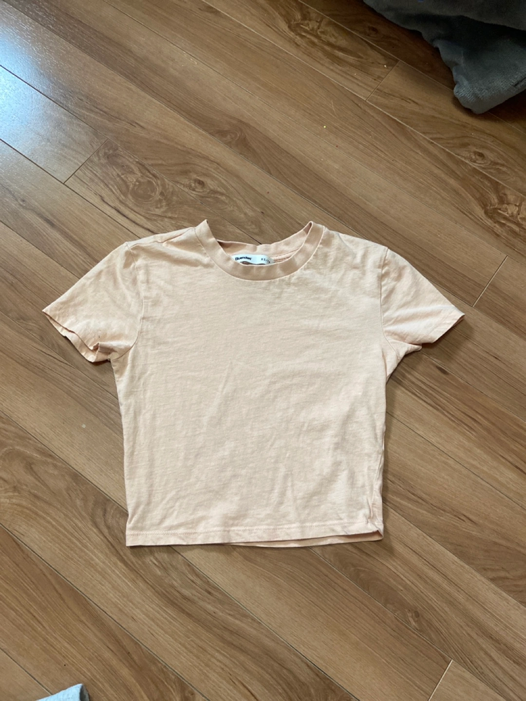 Selling a cute crop top in peach! It's a size XS/S and in great condition. Perfect for a casual day out!