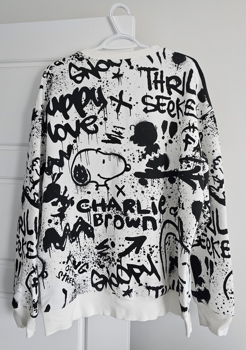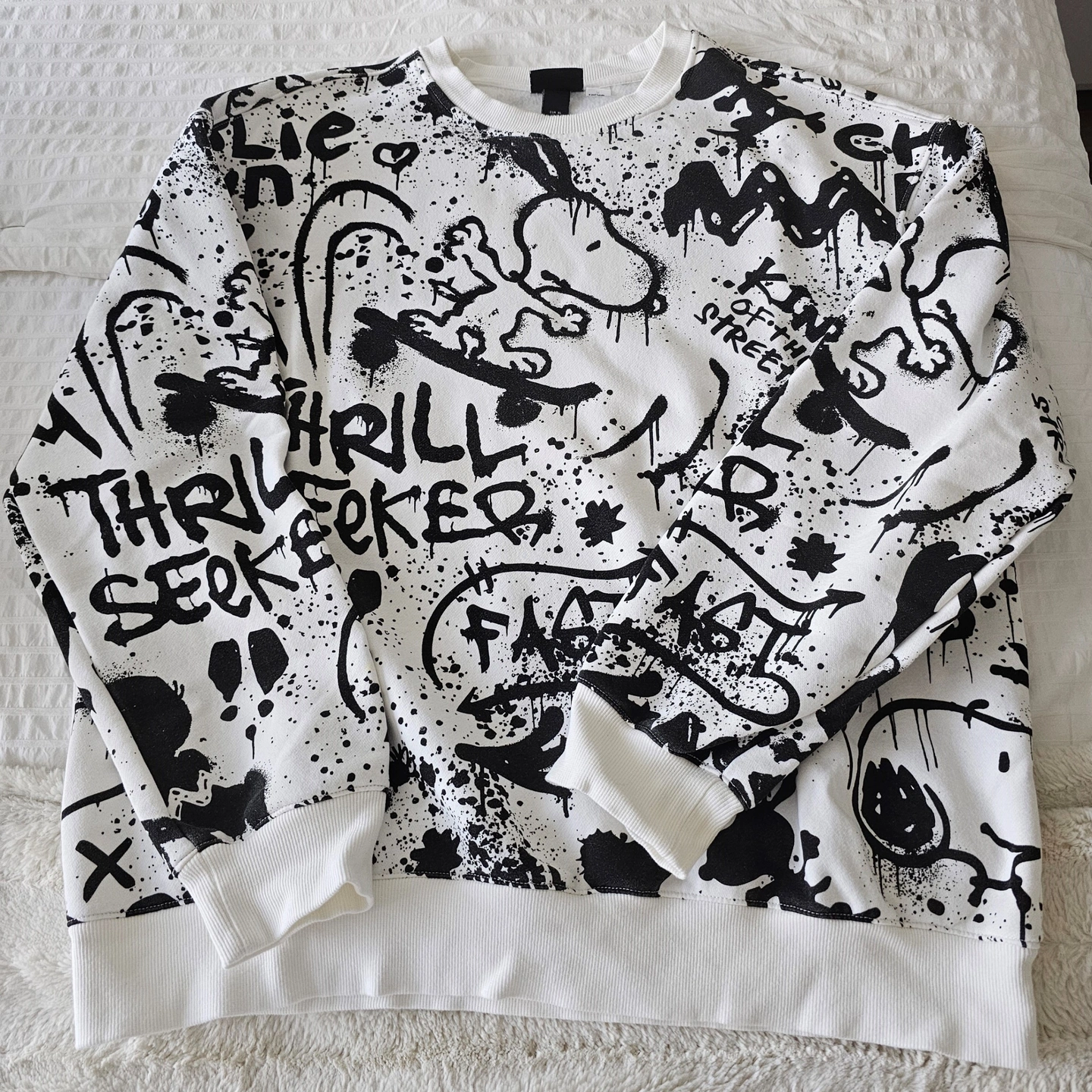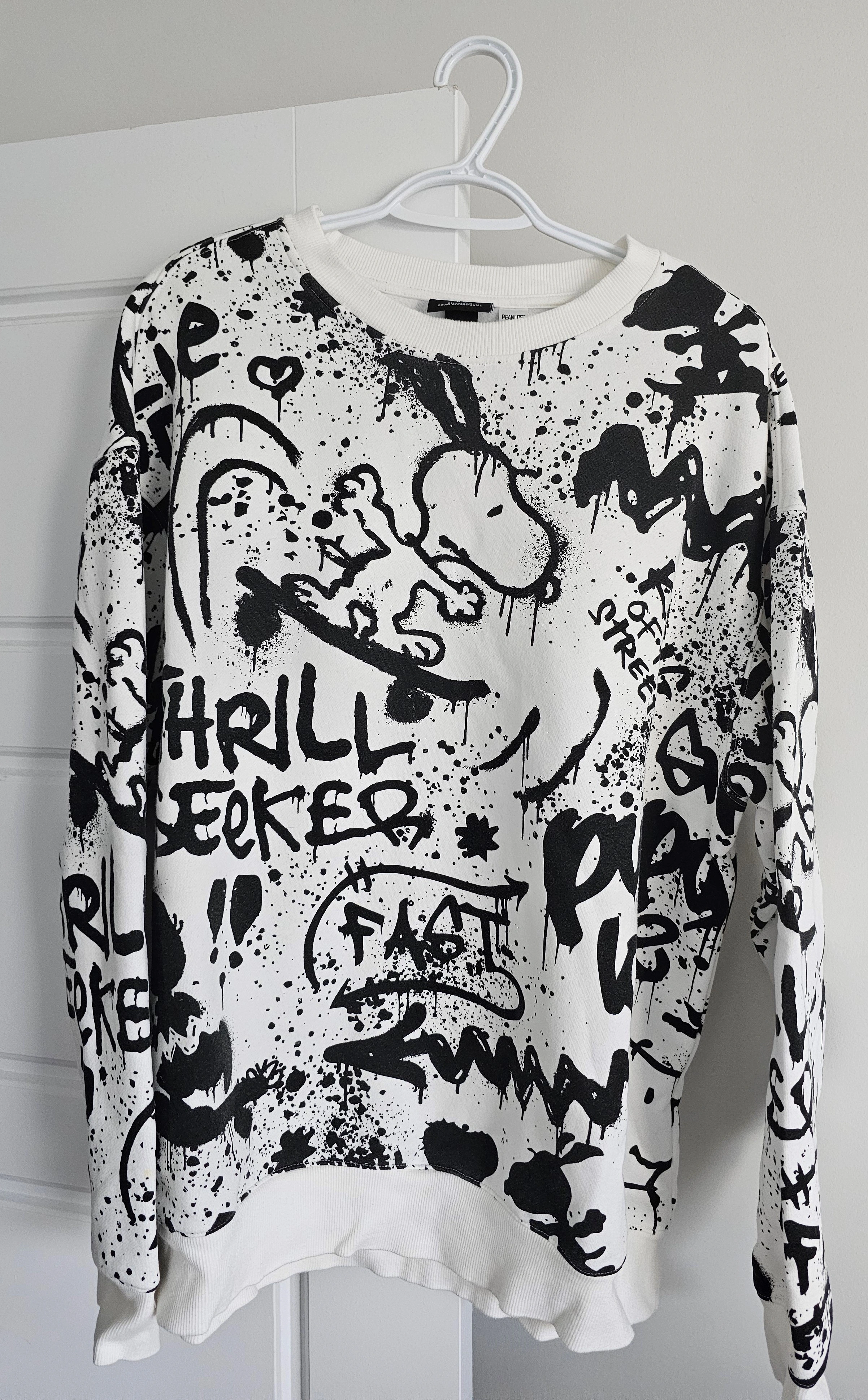 ~ IN THE SOUTH SURREY/WHITE ROCK AREA ~ New Men's Peanuts "Snoopy" Relaxed Fit Sweatshirt. ~ Cotton 60%, Polyester 40% ~ Top in midweight sweatshirt fabric made from a cotton blend with a soft brushed inside. Dropped shoulders and ribbing around the neckline, cuffs and hem. Loose fit for a generous but not oversized silhouette. ~ All over design of graffiti with Snoopy Skateboarding, along with shadows of Charlie Brown! ~ Size XL ~ In great clean, condition!!! ~ No tax to pay or shipping ~ Cash Only & you pick up. ~ Serious Buyers & No Low Ballers please. *** NOTE *** Please see my other listings as I am currently selling many household items such as Queen Size Pillow Cases and Duvet Covers, Backpacks, Bathroom Mats, Duffle Bags, Suitcases, Shoe Storage, Lots of various sizes of BRAND New Picture Frames and also BRAND NEW, NEVER WORN SNEAKERS etc.