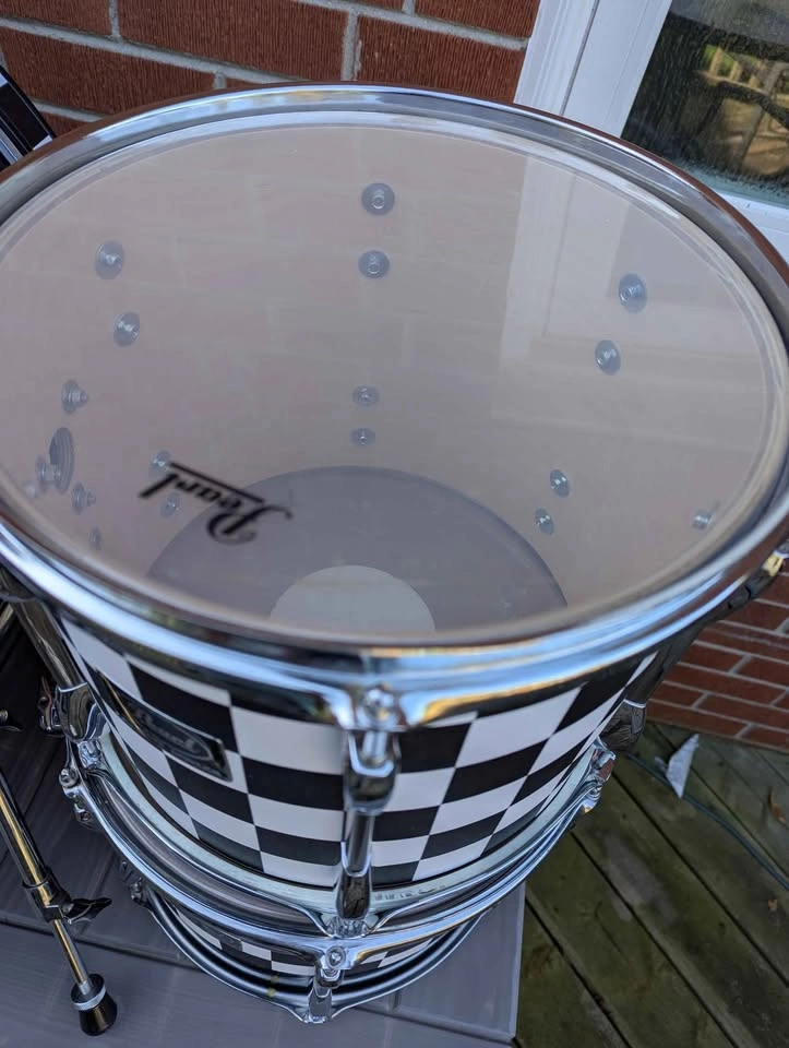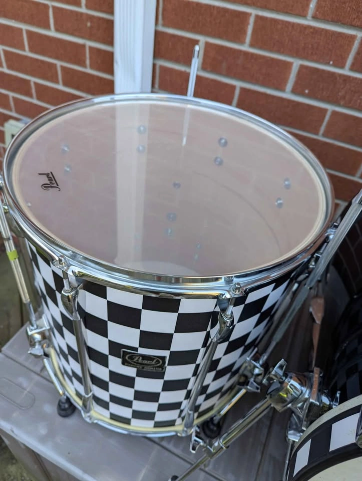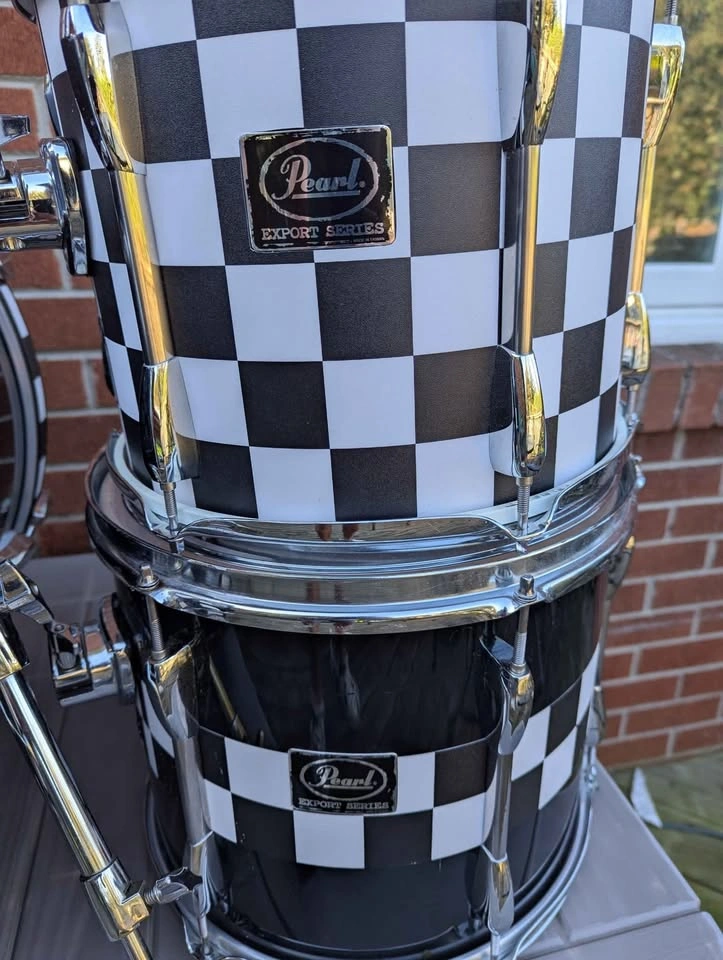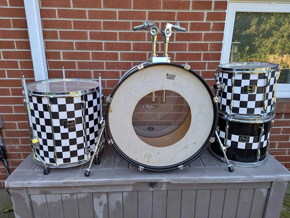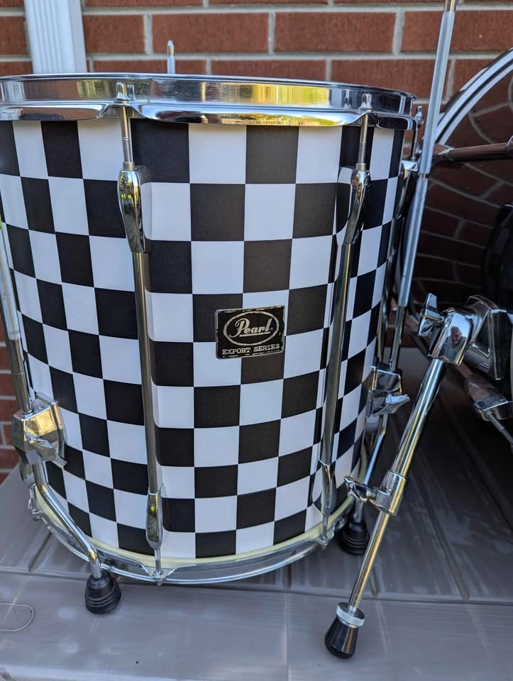 -Pearl Export drum kit -Excellent condition -I've put a peel and stick checkerboard pattern on the drums (it will easily come off if you like the black wrap better) -12", 13", 16" and 22" -best sounding Export drums -only used in my basement