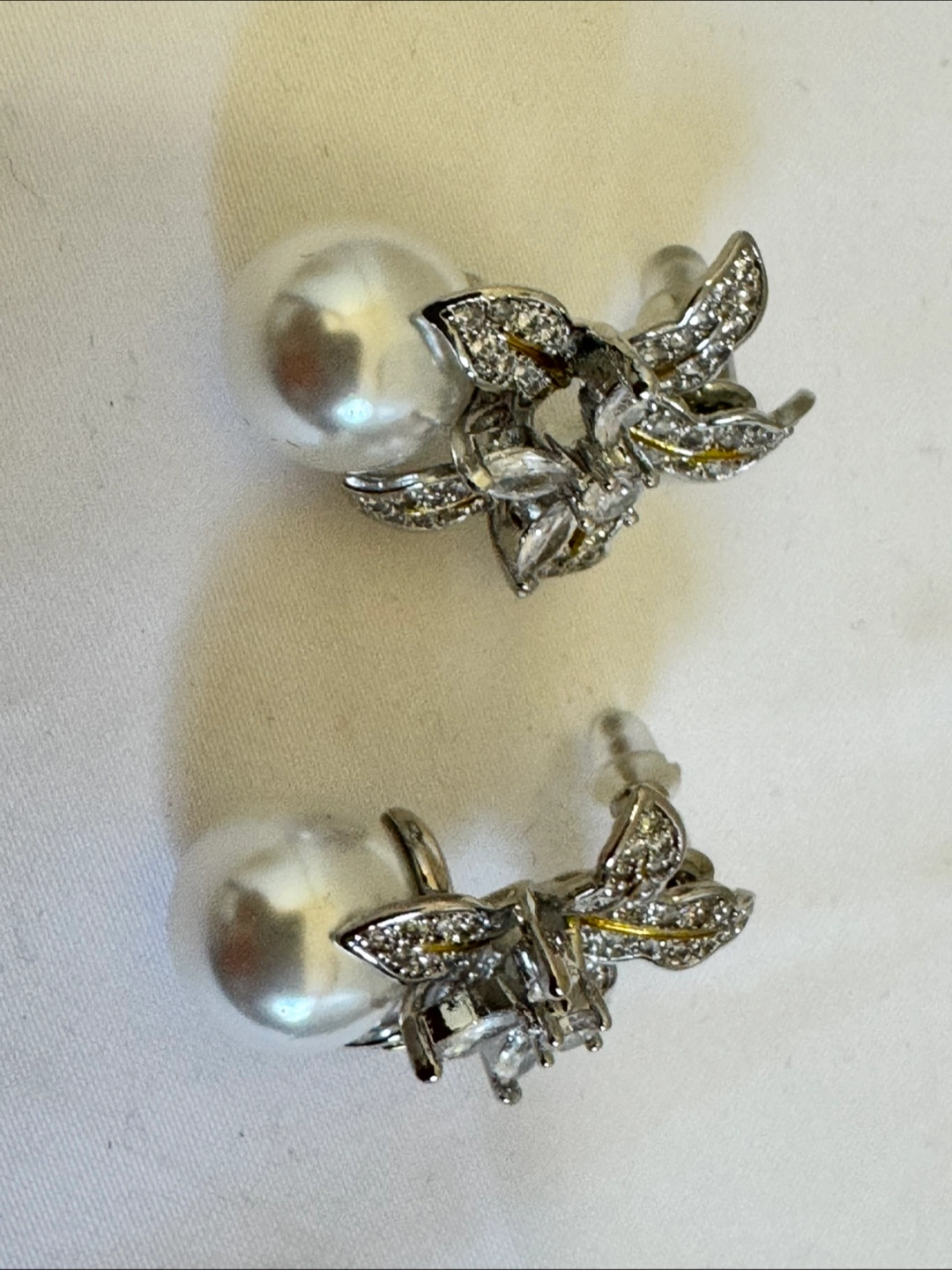 These earrings feature a beautiful combination of pearls and rhinestone flowers. They're in great condition and ready to add a touch of elegance to any outfit