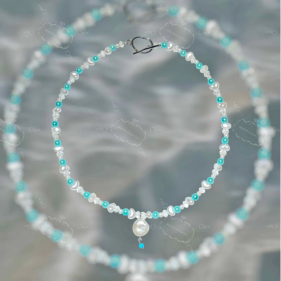 100% handmade by me :> Made from 304 stainless steel findings, faux pearls and glass beads! Check out my other listings and socials! Gegesaccessories._