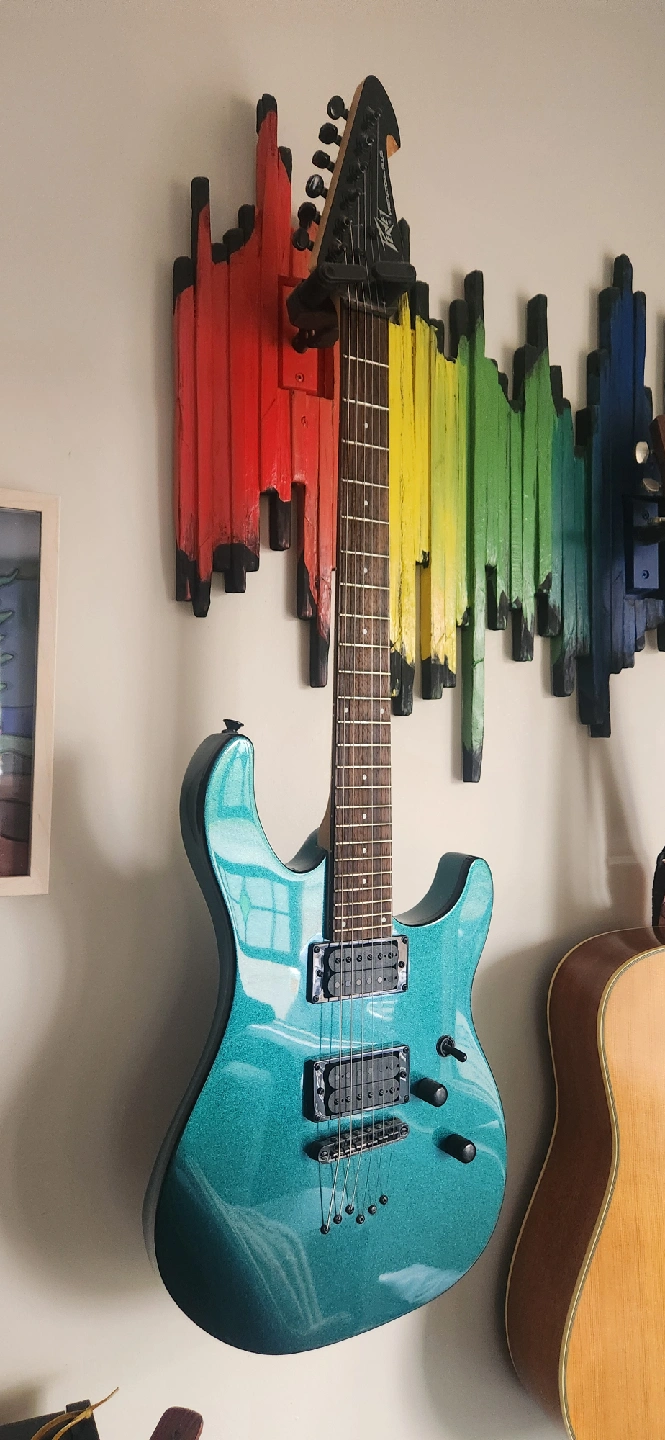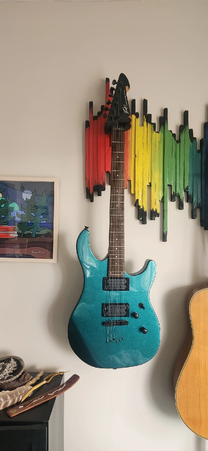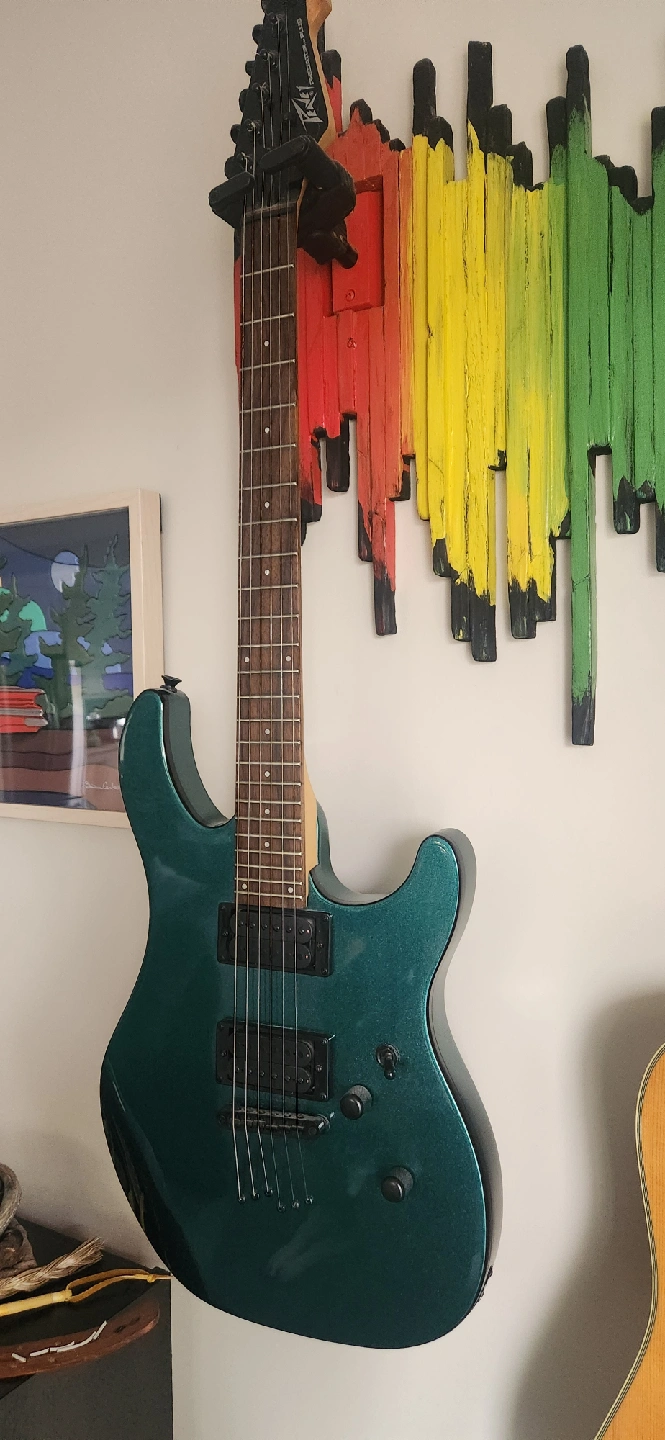 Great Christmas present for your wannabe Ozzy. Rarely used pristine condition Metallic Teal edition. Recently dusted and tuned. 6 string right handed model, absolutely no scratches.Well cared for. Ready to rock out a new home. Peavey Amp included. Premium guitar hookup. From a smoke free home