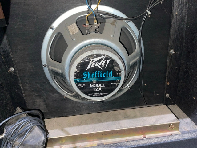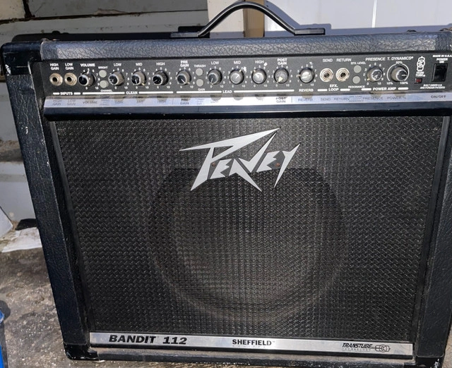 Peavy Bandit 112 Sheffield Amp for sale. 1990s model. A PDF of the manual is available on the Peavy Site here: https://assets.peavey.com/literature/manuals/80302302.pdf Has Peavy effects pedal remote switch as well. Powers on fine. I don’t currently have a guitar to test it with. Has been sitting in my basement unused for a few years. Inherited from an uncle but he’d already gotten rid of his guitars. Was used infrequently before coming into my possession. Open to reasonable offers. Some more info on this model compared to other versions of the Bandit from a Peavy Amp forum: “Transtube Series Bandit 112 (1995-1999) The Transtube Series Bandit 112 formally introduced Peavey's proprietary "Transtube" technology that allows a solid state amplifier to perform more like a vacuum tube amplifier. Central to the Transtube concept is a patented "power brake" that allows the user to control the amount of power required for dynamic range compression from the power amp, from 100% all the way down to 10%, thus enabling the amplifier to acheive power amp compression without running at full volume. The Transtube Series Bandit 112 was made in Meridian MS USA and came stock with the Sheffield 1230 speaker. Notably, it was also the first Bandit to have an external speaker jack, allowing external speakers to be run instead of or in parallel with the internal speaker. Running into 8 ohms, power is still 80 watts RMS, but running into 4 ohms (the equivalent of using the internal 8 ohm speaker together with an 8 ohm extension speaker) the power is increased to 100 watts RMS. Due to the horizontal strip of chrome underneath the controls, this version is commonly referred to as the "Silver Stripe" Bandit, but due to the black color and square shape, it is sometimes called the "Blackbox" Bandit (not to be confused with "Blackface", which refers to F*nder products and/or performances in the style of Al Jolson...)”