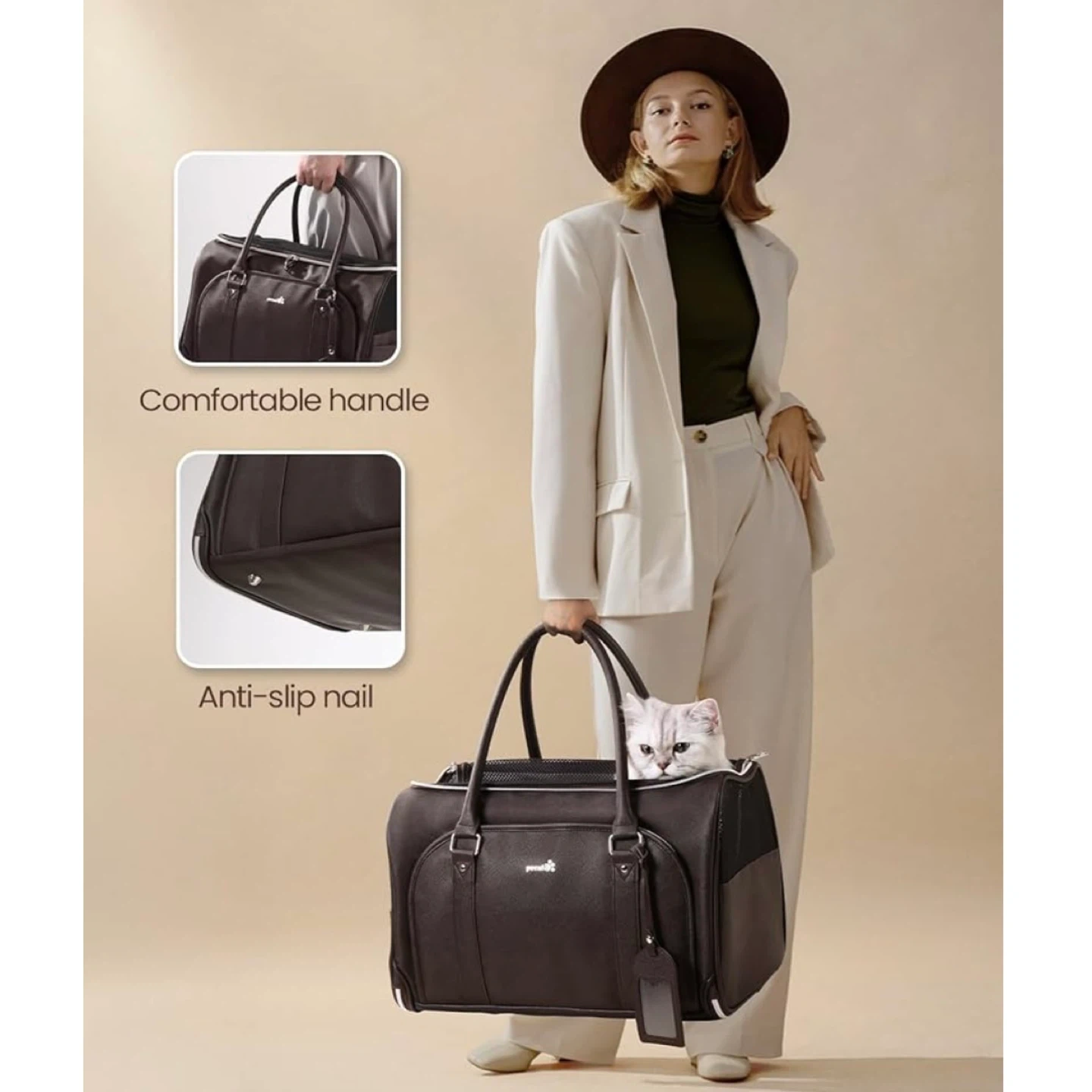 Show allPecute Faux Leather Fabric Pet Carrier (DARK BROW)
