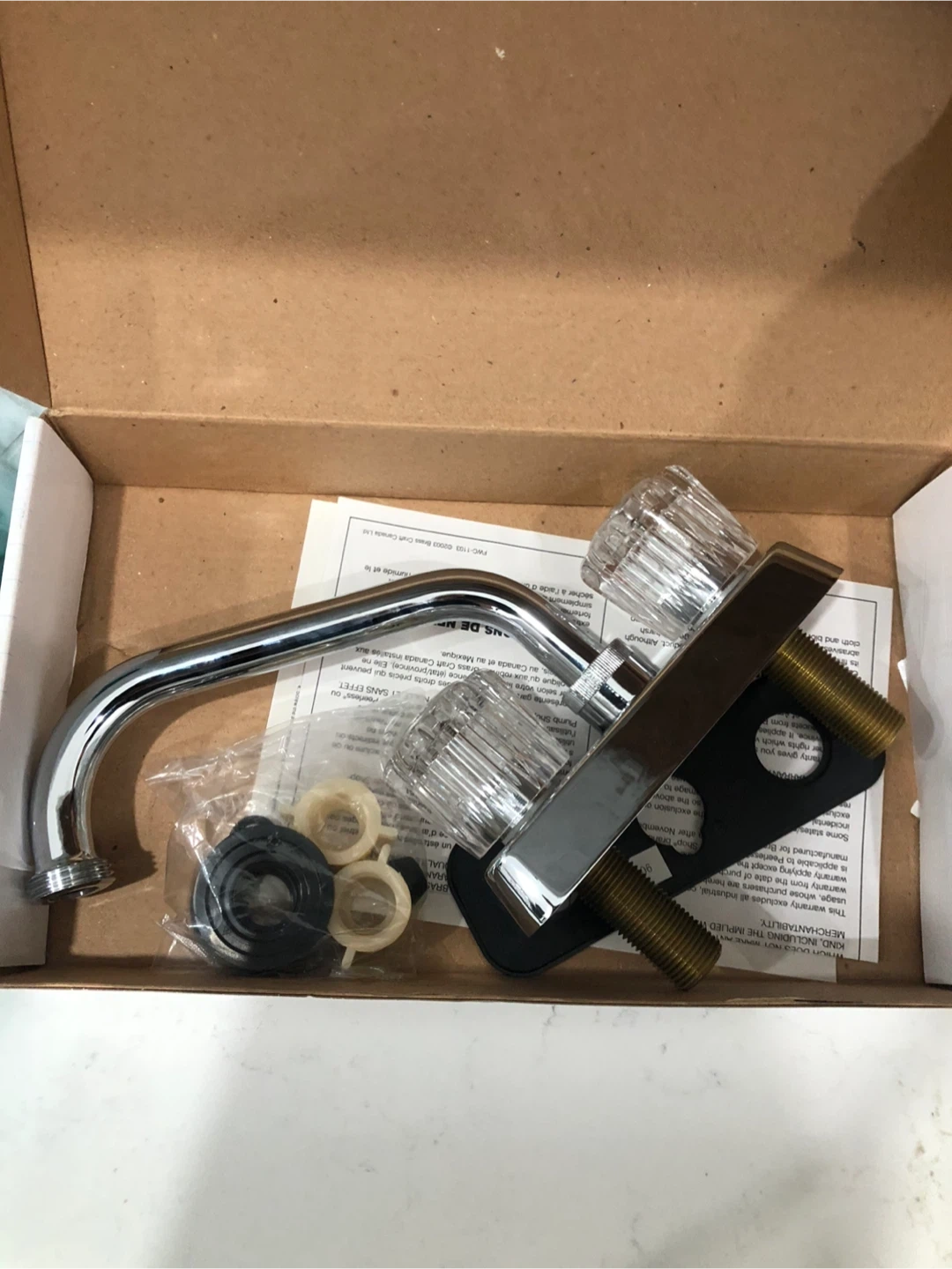 Selling a brand new Peerless 4" two handle laundry faucet! It comes in the original box and includes all the components. The faucet features solid brass waterways and acrylic handles.