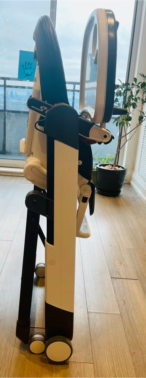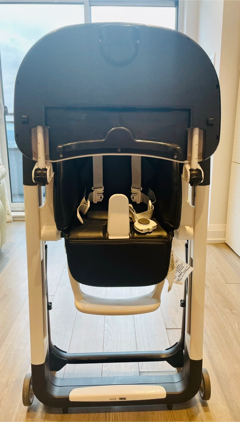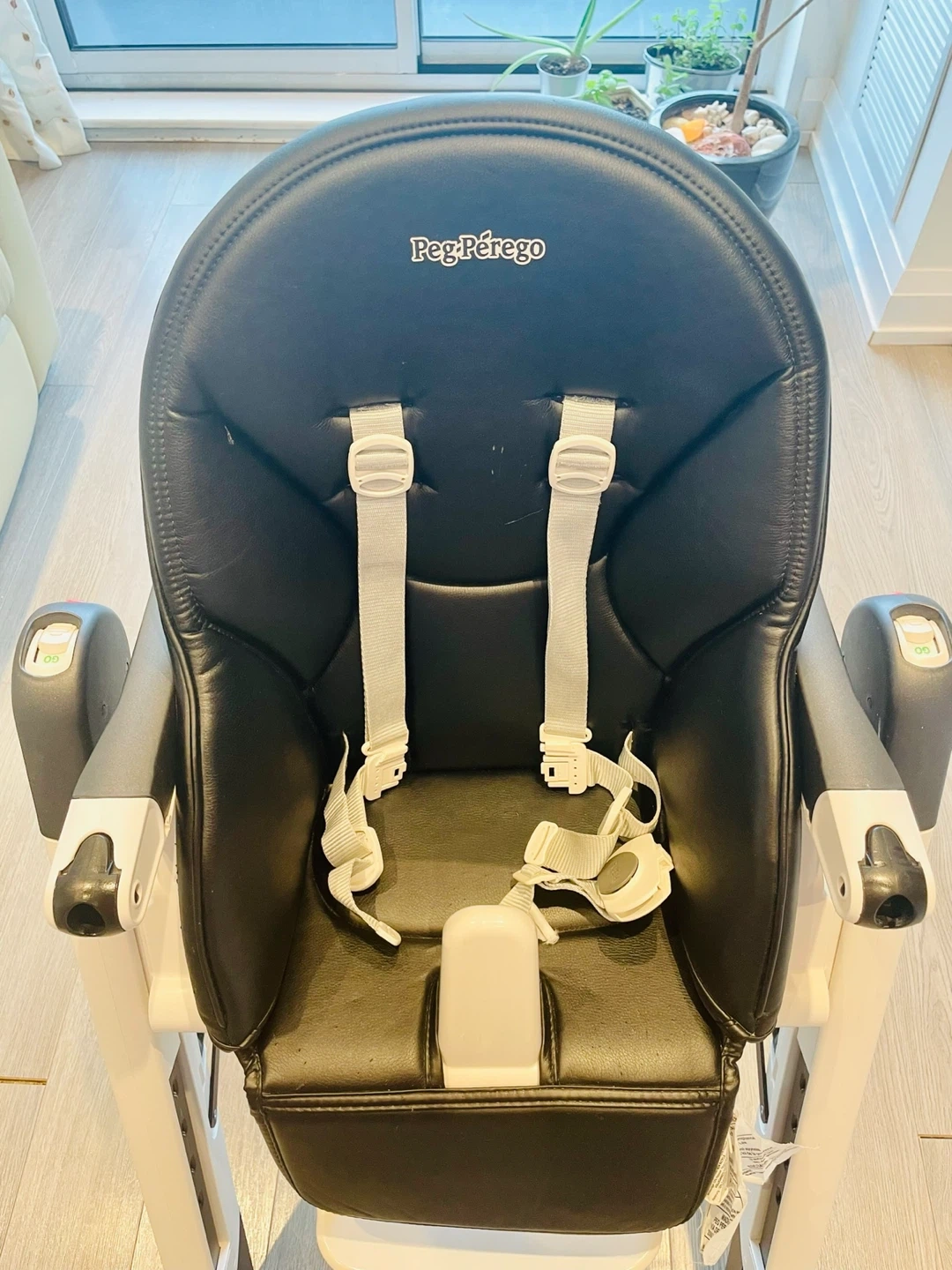 Selling our Peg Perego Siesta high chair in excellent, like-new condition. All mechanisms work perfectly — the recline, height adjustment, and wheels all move smoothly. Comes with all trays and original parts. The only flaw is a small tear in the back pocket, which you can see in the photos. It’s a common issue with this model and doesn’t affect use or safety.