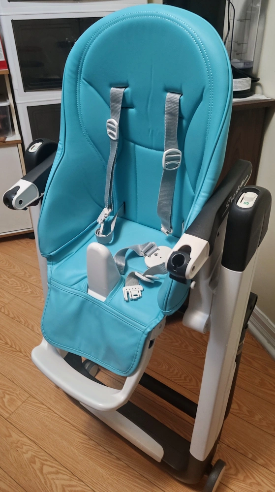 Selling a Peg Perego Siesta high chair in a lovely turquoise colour. This chair is in great condition and ready for a new home! It is height adjustable and folds easily for storage, making it super convenient for smaller spaces. Perfect for meal times with your little one!