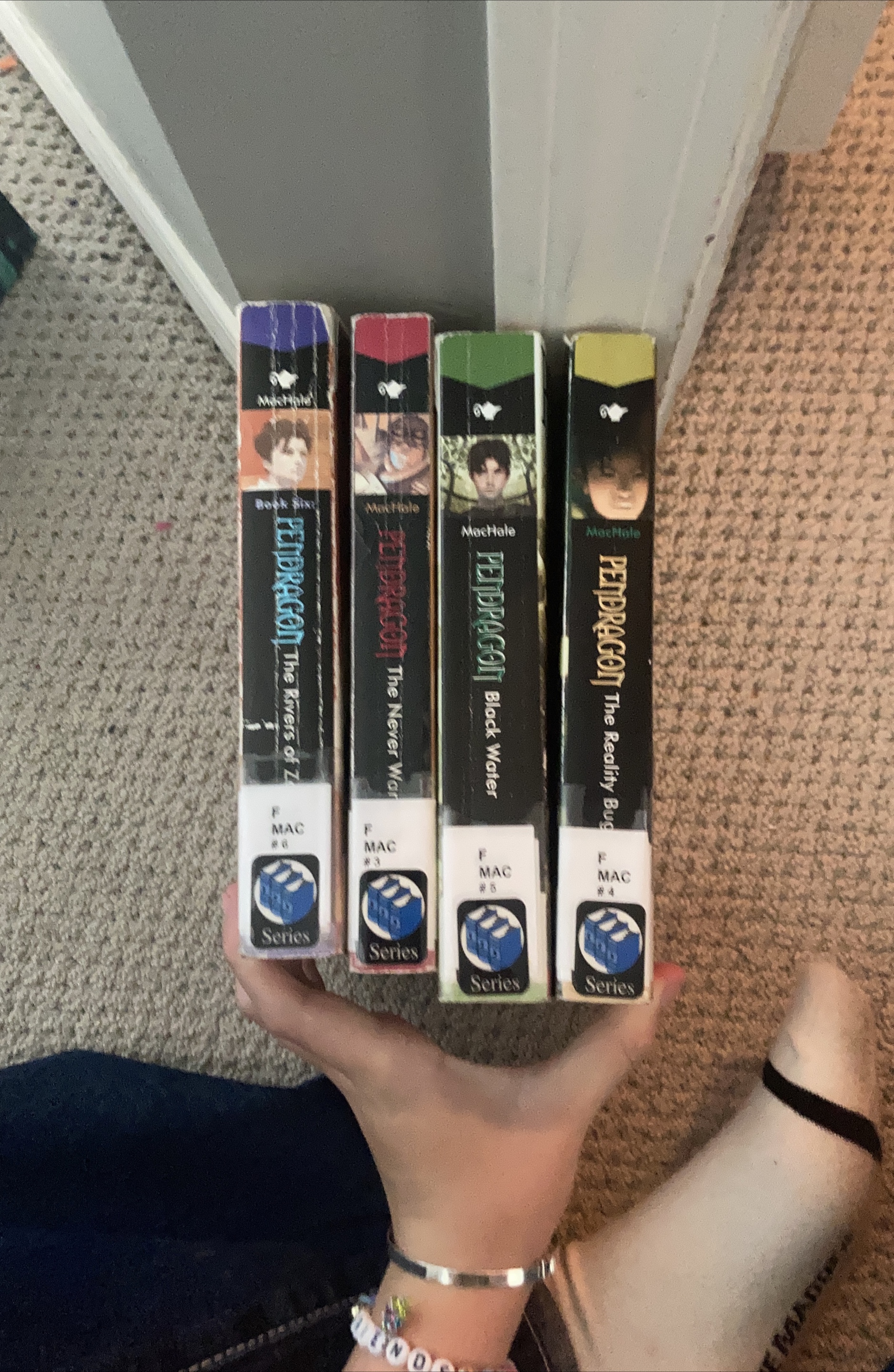 Selling a set of Pendragon books by D.J. MacHale! Included are: - The Rivers of Zadaa (Book Six) - The Never War (Book Three) - Black Water (Book Five) - The Reality Bug (Book Four) They are part of the F. MAC series Each book 5$ or all for 20$