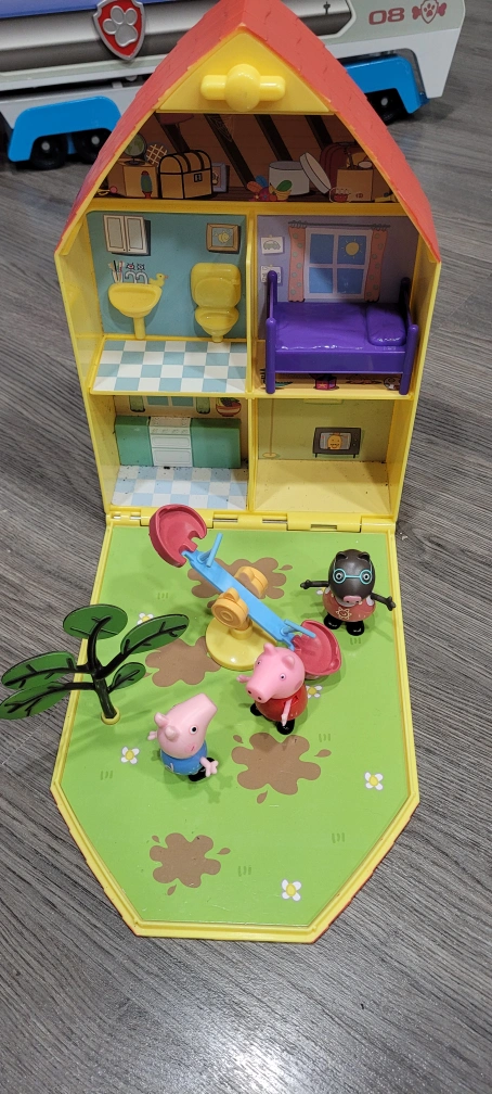 Selling a Peppa Pig house playset! It comes with Peppa, George, and another character, plus a little seesaw. The house opens up to reveal different rooms. Perfect for Peppa Pig fans!