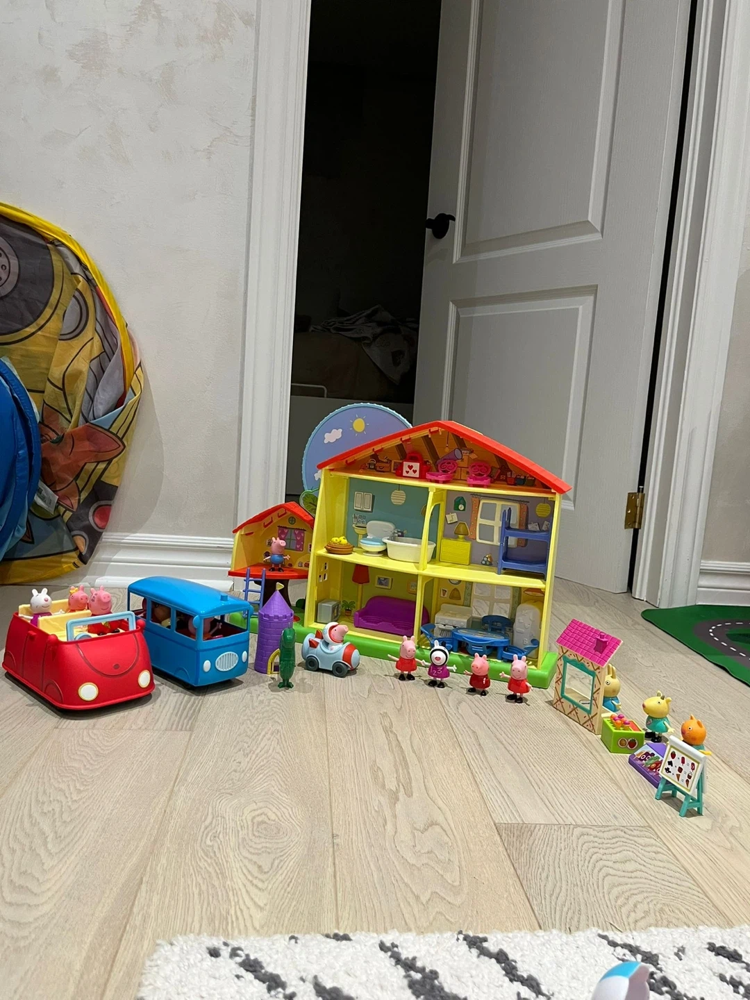 Selling a Peppa Pig's house playset! It comes with several Peppa Pig figures and accessories, including the house, a car, and a bus. Great for hours of imaginative play!
