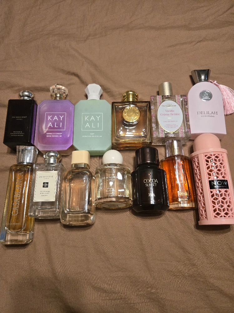 Selling a bundle of various perfumes including: - Jo Malone Vetiver & Golden Vanilla Cologne Intense - Kayali Yum Pistachio Gelato | 33 - Kayali Vanilla Candy Rock Sugar | 42 - Burberry Goddess intense all lightly used. at least 75% full asking $120 obo for the kayali, Joe Malone and rare beauty. others $40 each and others as pictured!