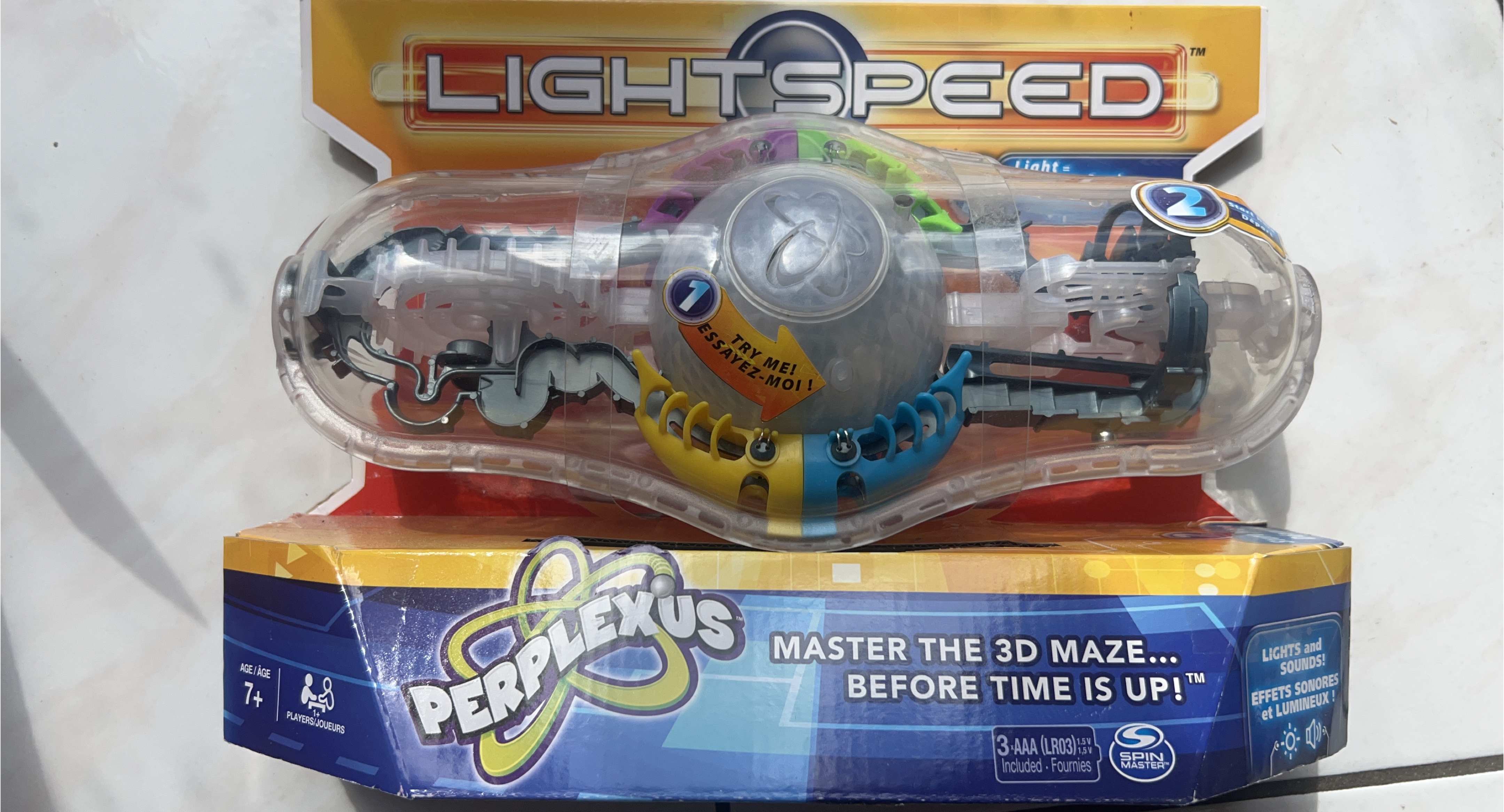 Get ready to master the 3D maze with the Perplexus Lightspeed! This challenging game is perfect for ages 7 and up, and can be enjoyed by one or more players. The Perplexus Lightspeed features lights and sounds for an extra level of excitement. Try it out and see if you can beat the maze before time is up!