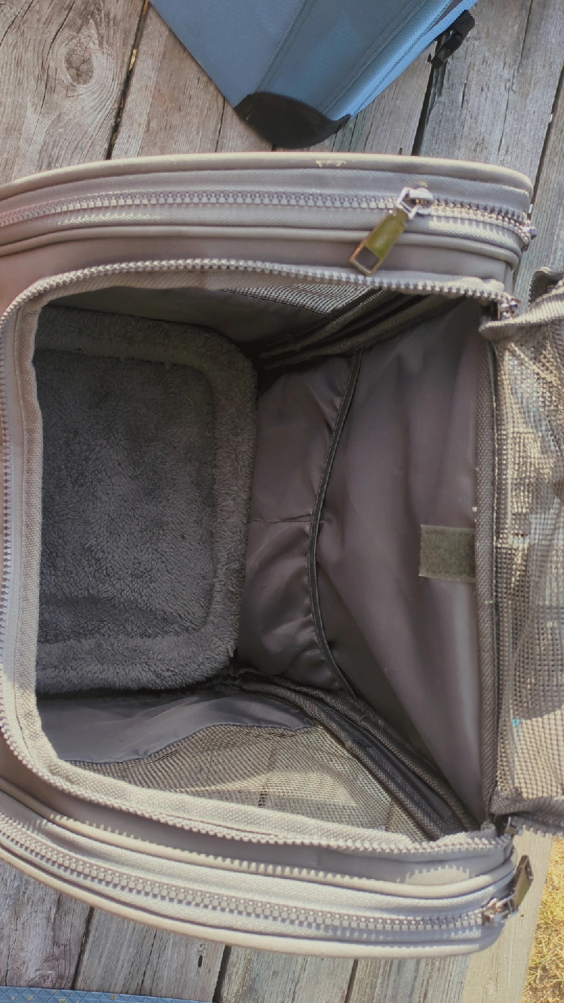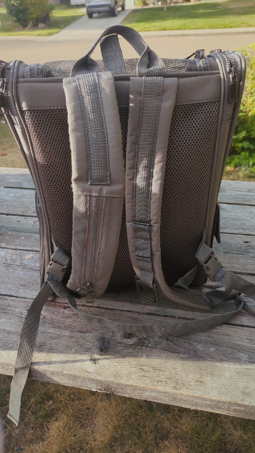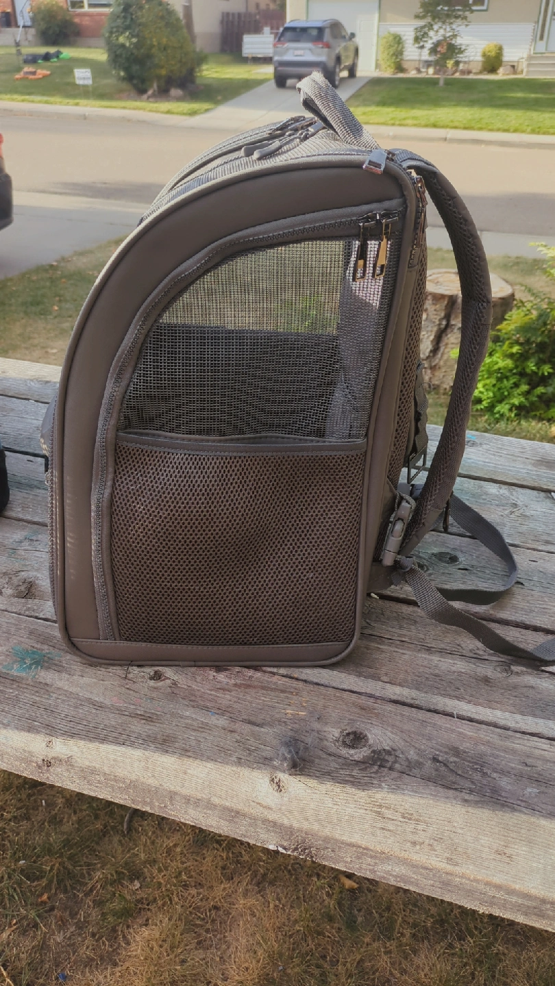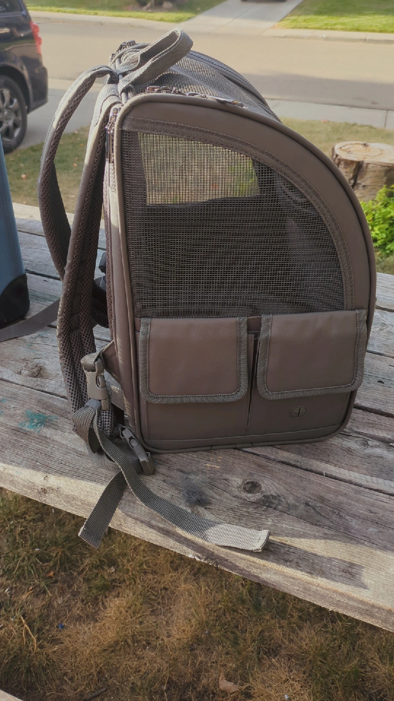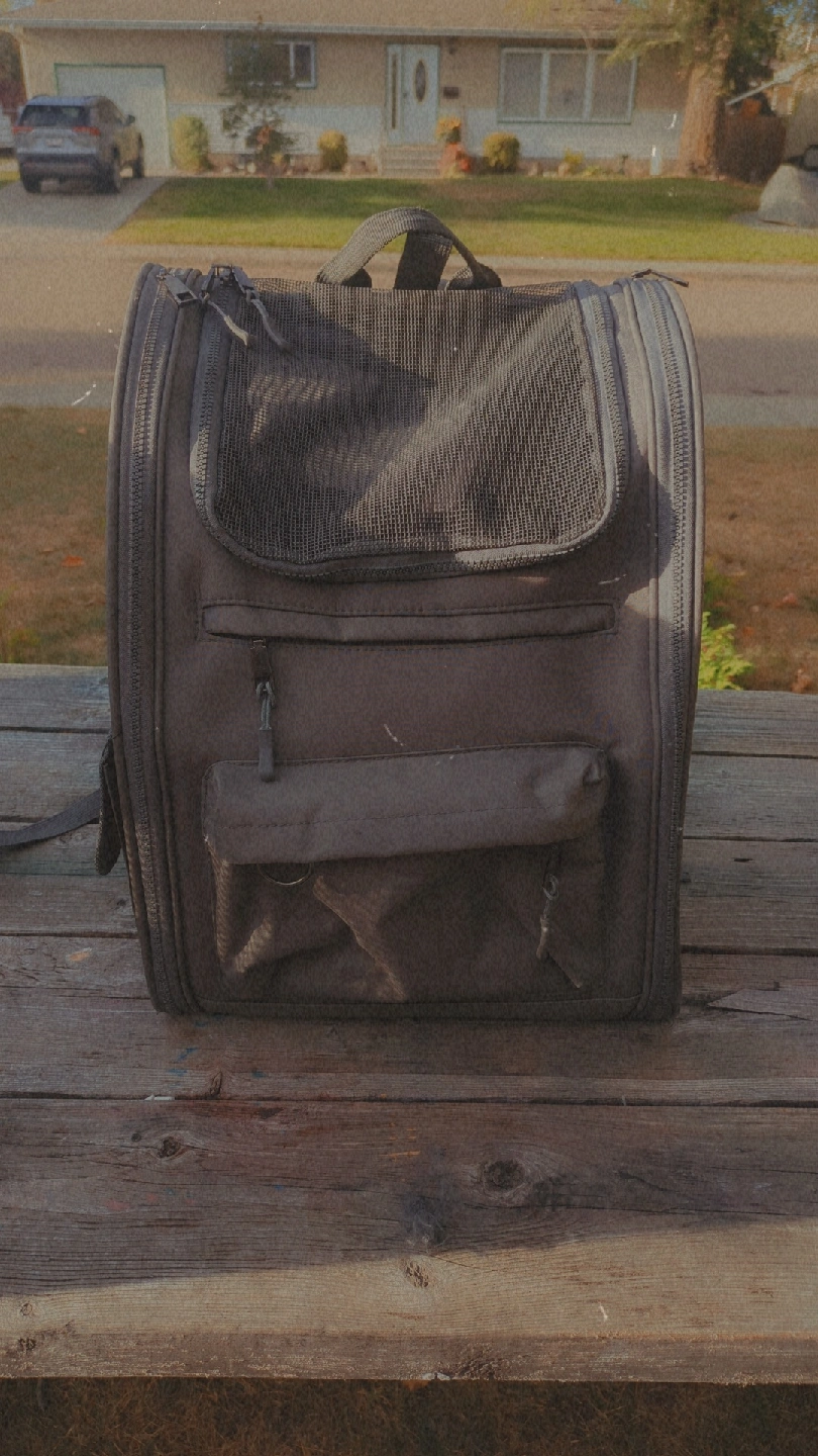 Selling a pet carrier backpack. It features mesh windows for ventilation and visibility, plus adjustable straps for comfortable carrying. Perfect for taking your furry friend on adventures!
