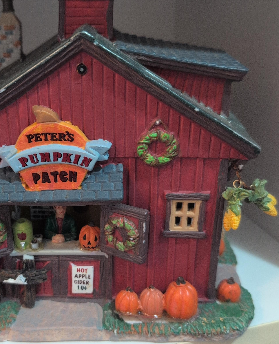 This is a cute little Peter's Pumpkin Patch village decoration. It has a lot of detail and would be perfect for fall or Halloween decorating
