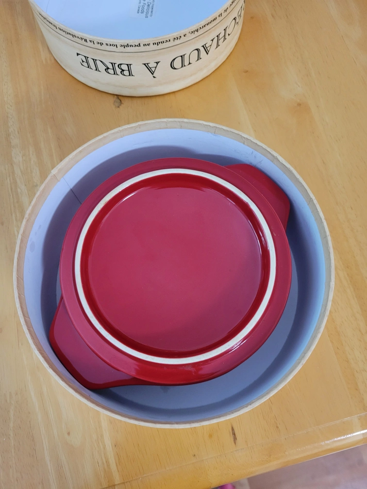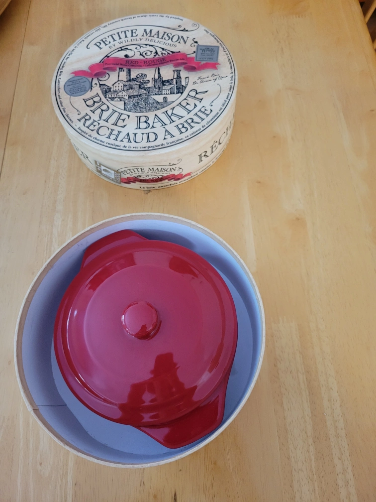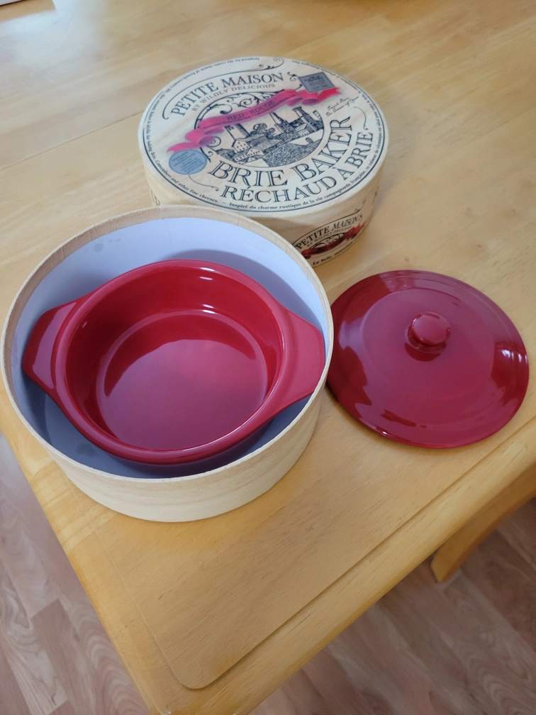 Selling a Petite Maison Brie Baker in excellent condition! It's a lovely red colour and comes with its original box. Perfect for baking brie and serving it warm for your next gathering!